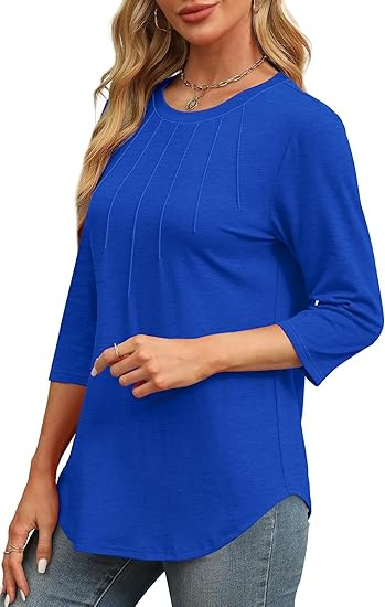 New fashionable casual pleated round neck seven quarter sleeve top base shirt