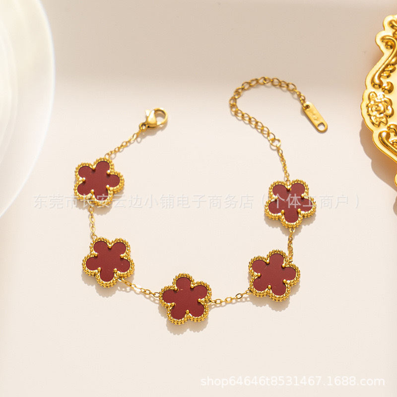 Hot titanium steel five-flower four-leaf clover bracelet fashion light luxury lucky temperament high-end sense new all-match trendy fritillary