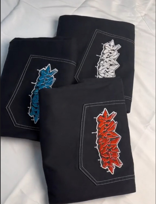 Cross-border Amazon European and American high street JNCO pattern embroidered jeans hiphop hip hop loose wide leg jeans