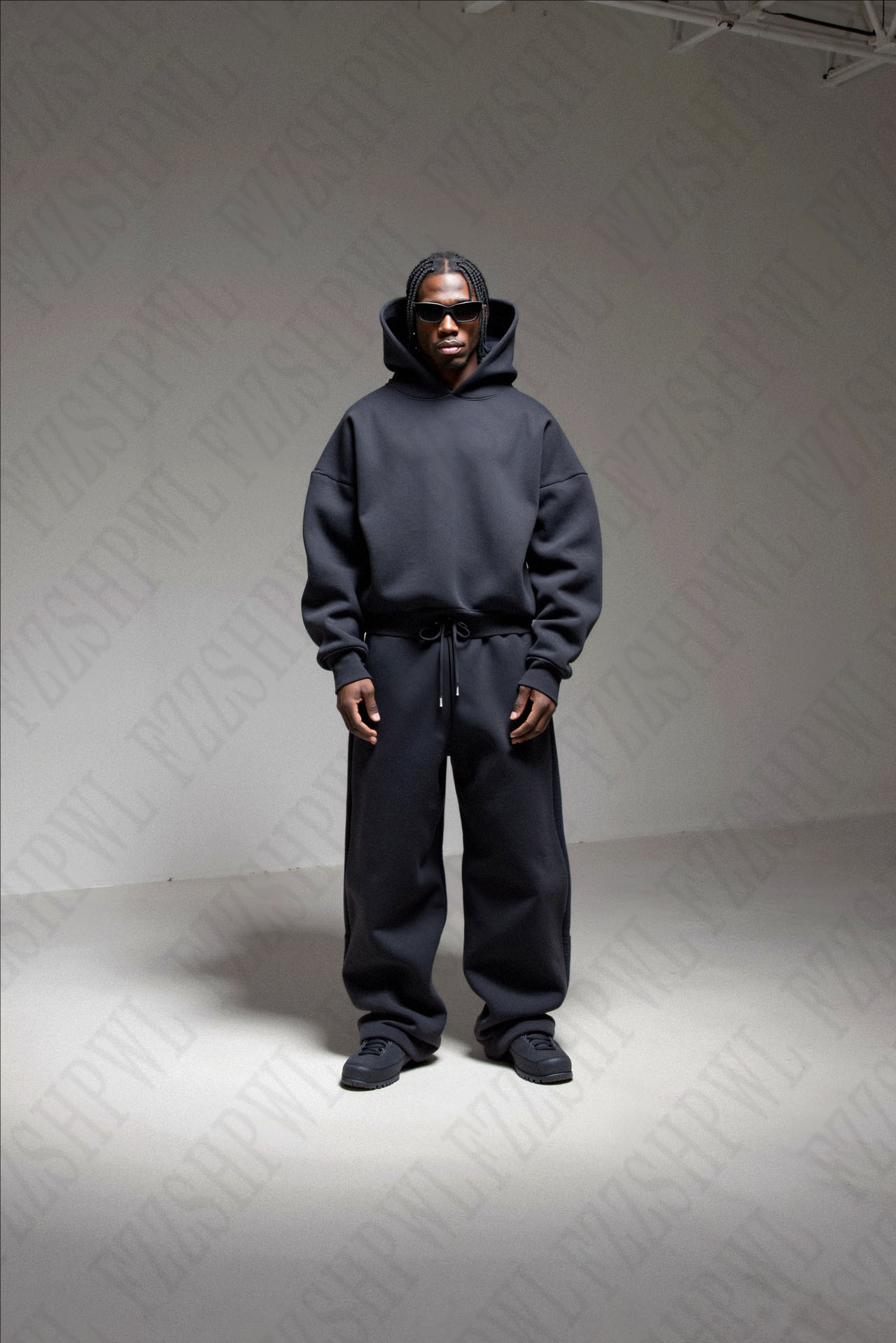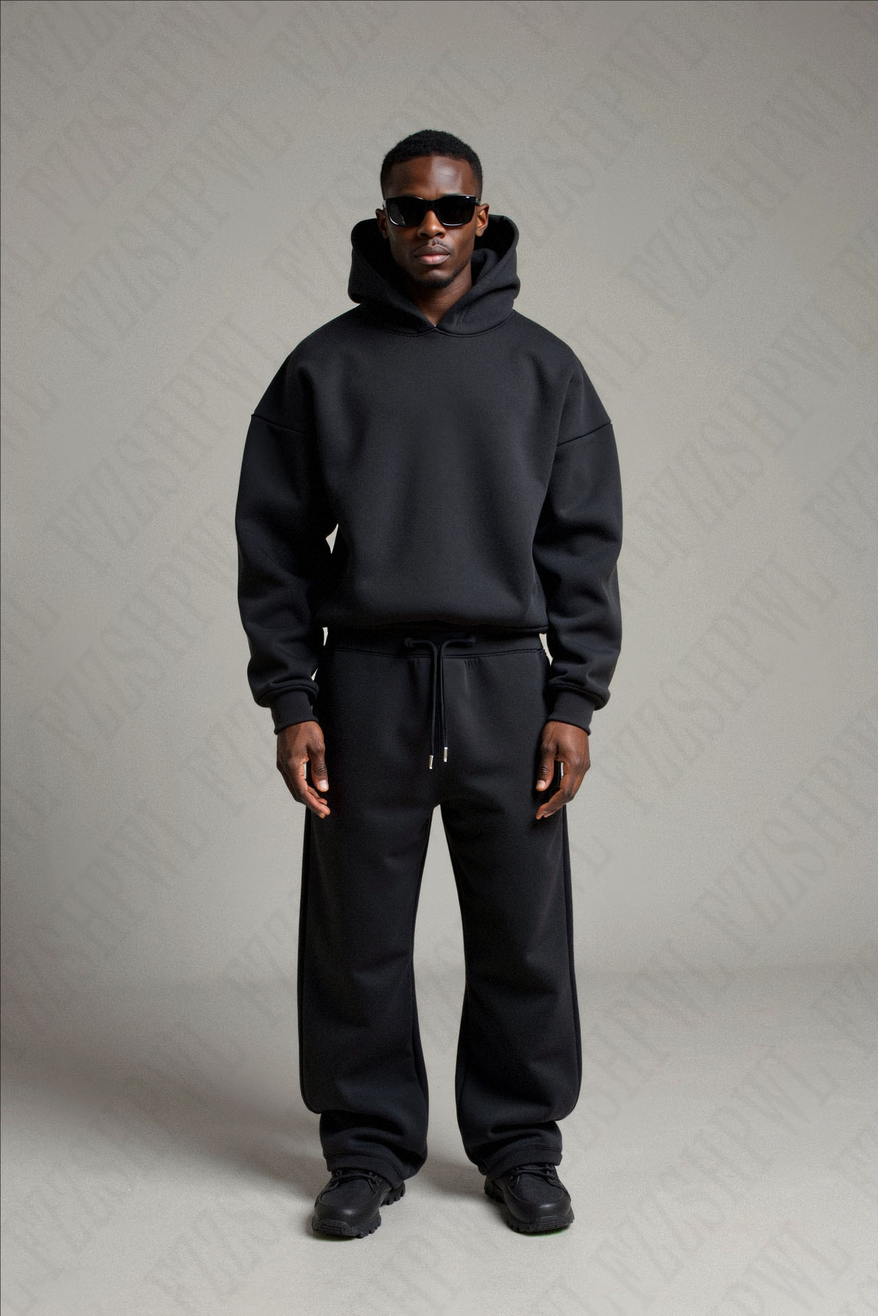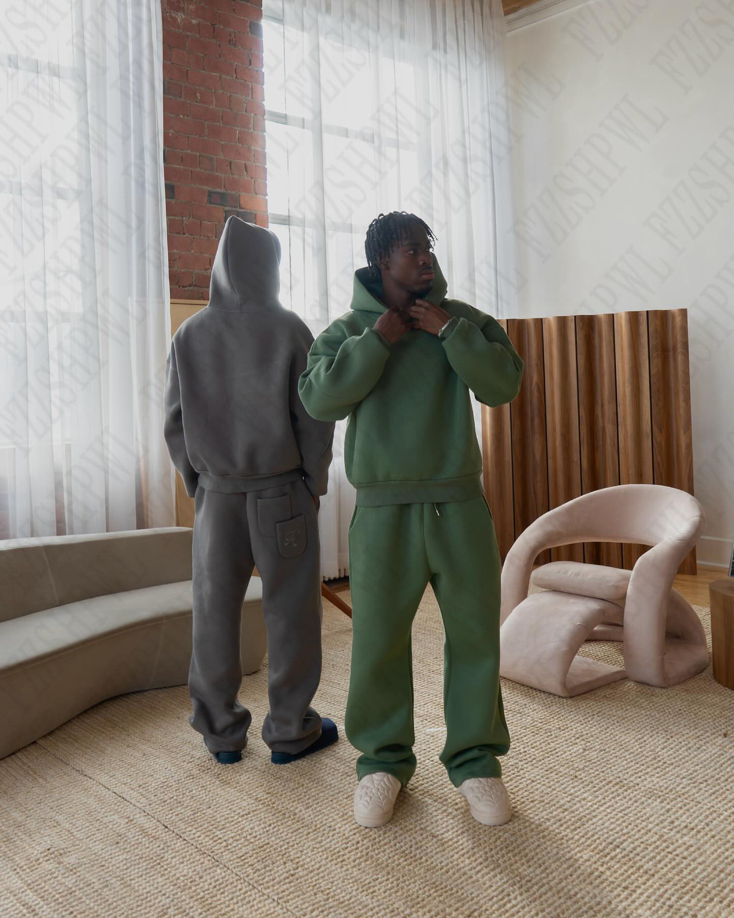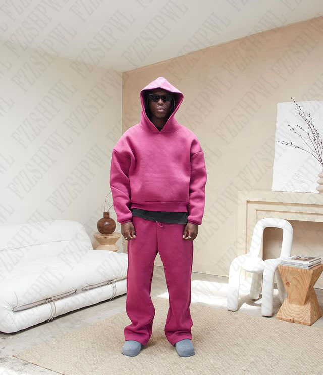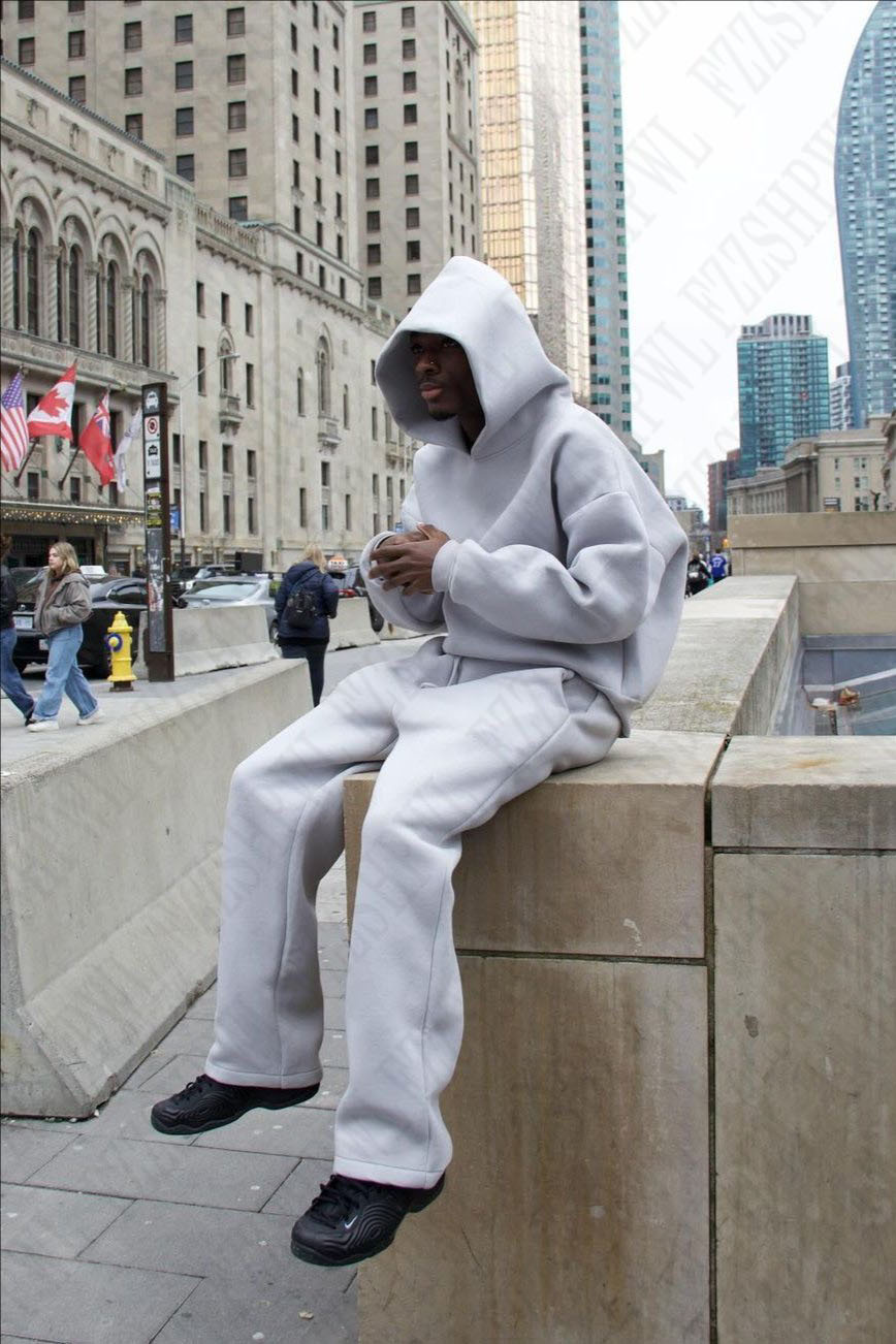 2024冬季欧美跨境休闲街头时尚连帽衫运动衫纯色宽松卫衣卫裤