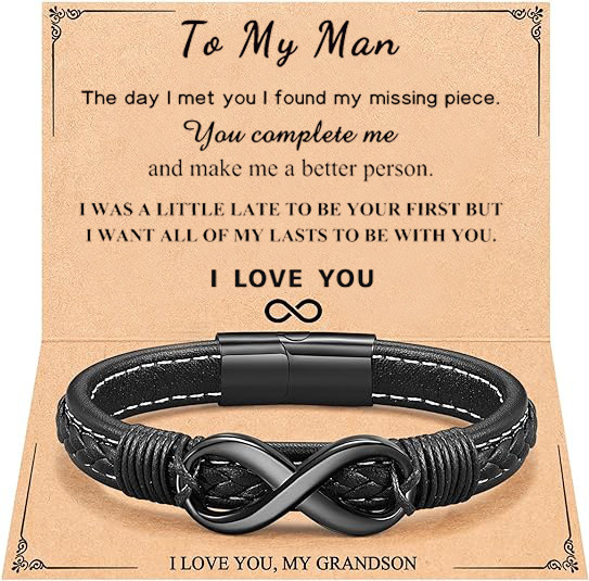 8-shaped leather bracelet stainless steel black magnetic leather bracelet dropshipping supplier