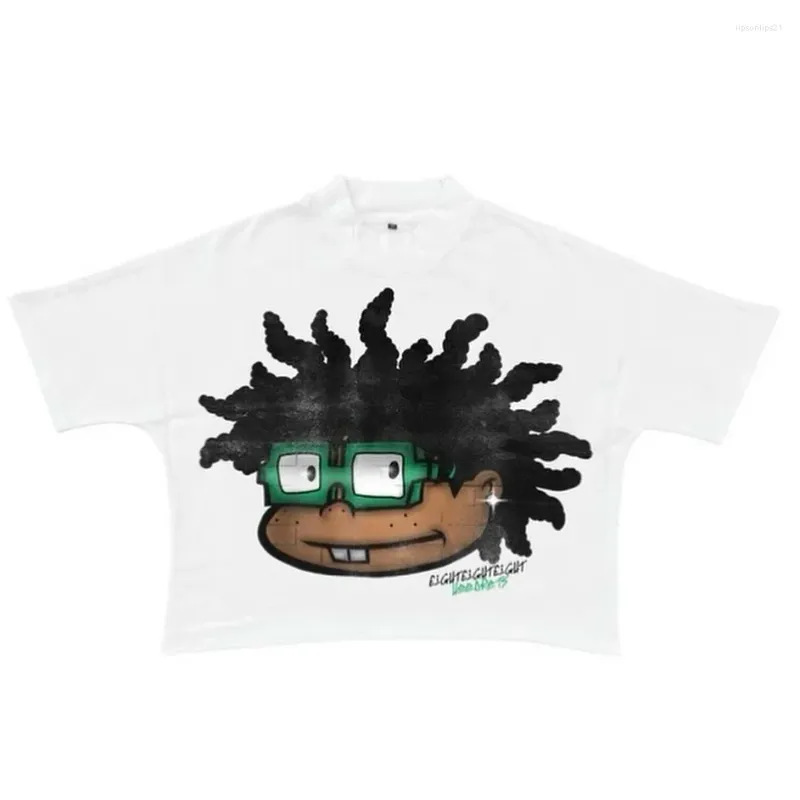 Harajuku Retro Anime Head Print Graphic T-Shirt y2k Top Street Oversized T-Shirt Gothic Anime Short Sleeve