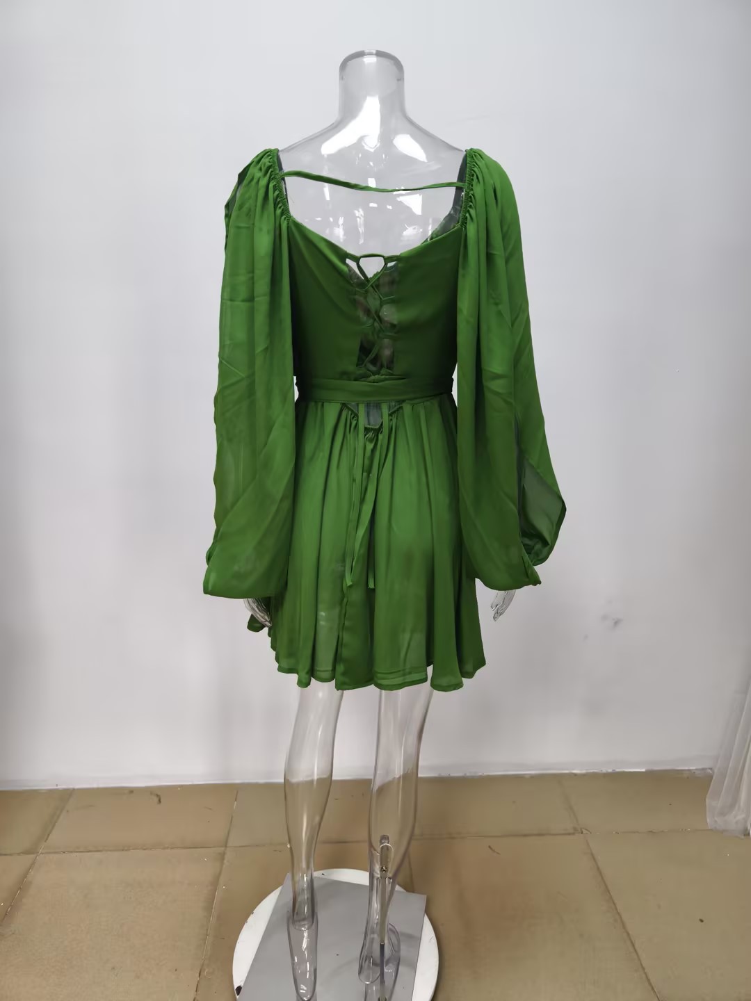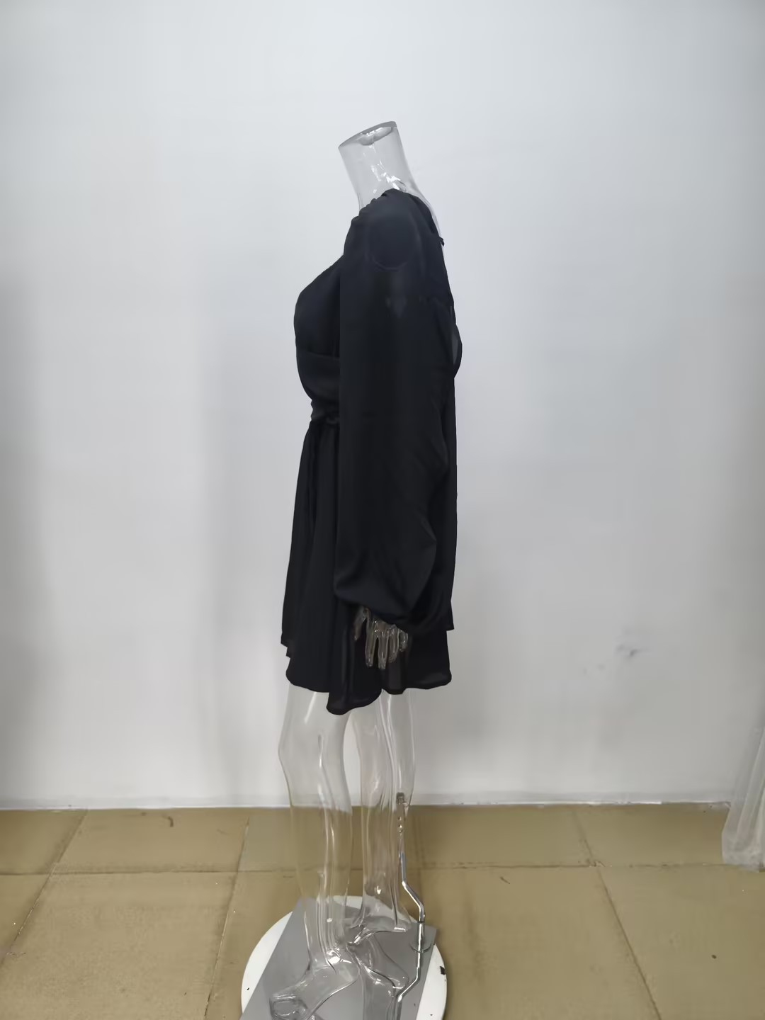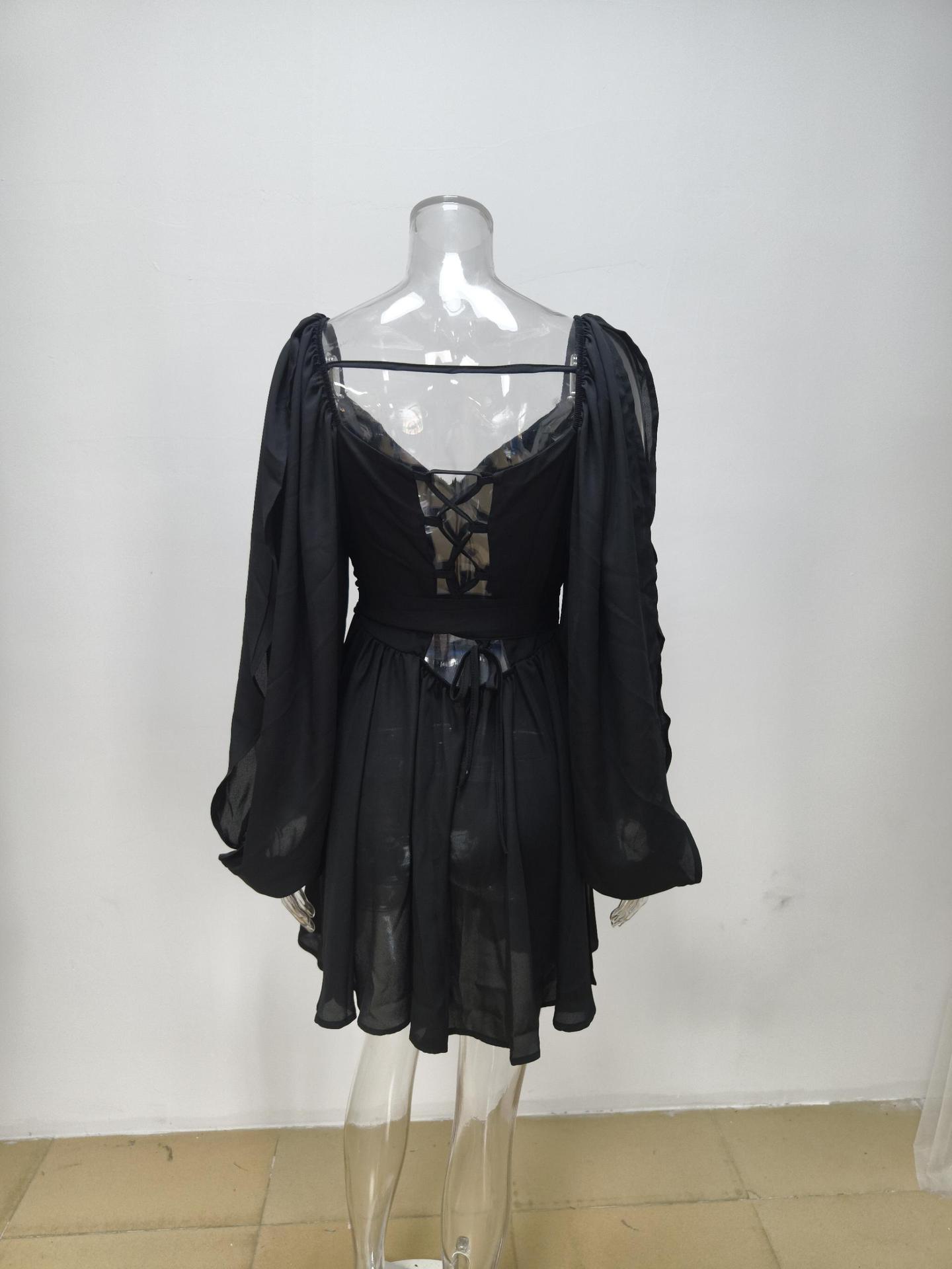 Cross-border 2024 Amazon European and American Women's dress Sexy Spice Girls Hollow Lantern Sleeve V-neck Shoulder dress