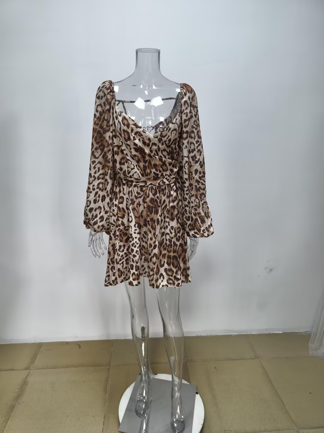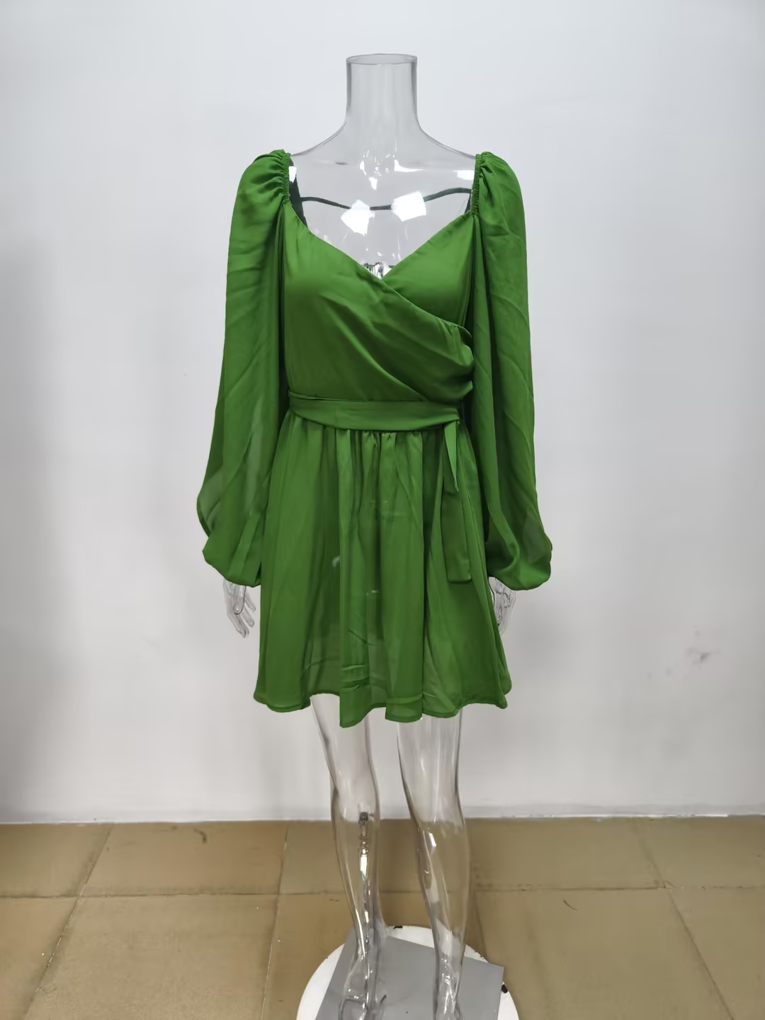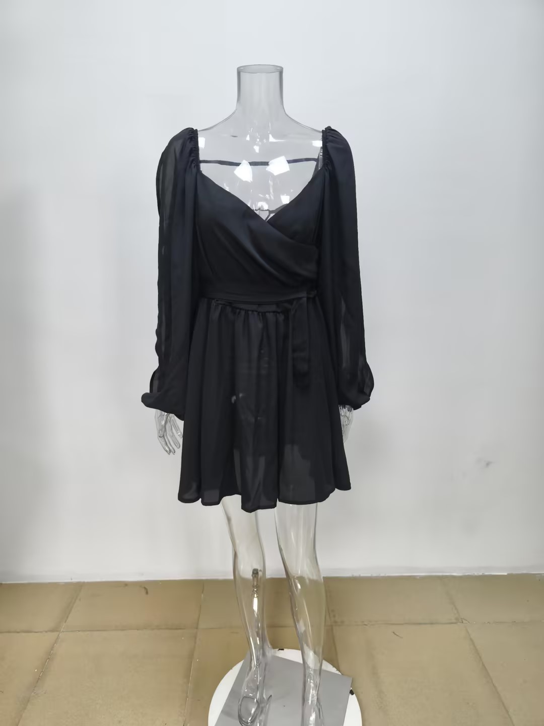 Cross-border 2024 Amazon European and American Women's dress Sexy Spice Girls Hollow Lantern Sleeve V-neck Shoulder dress