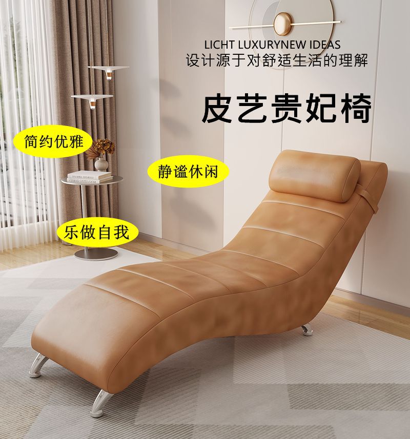 Simple concubine recliner solid wood funny chair Apartment Hotel beauty bed small apartment living room bedroom oil wax leather sofa