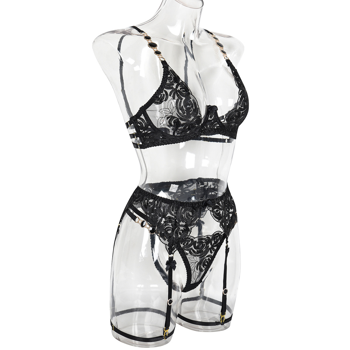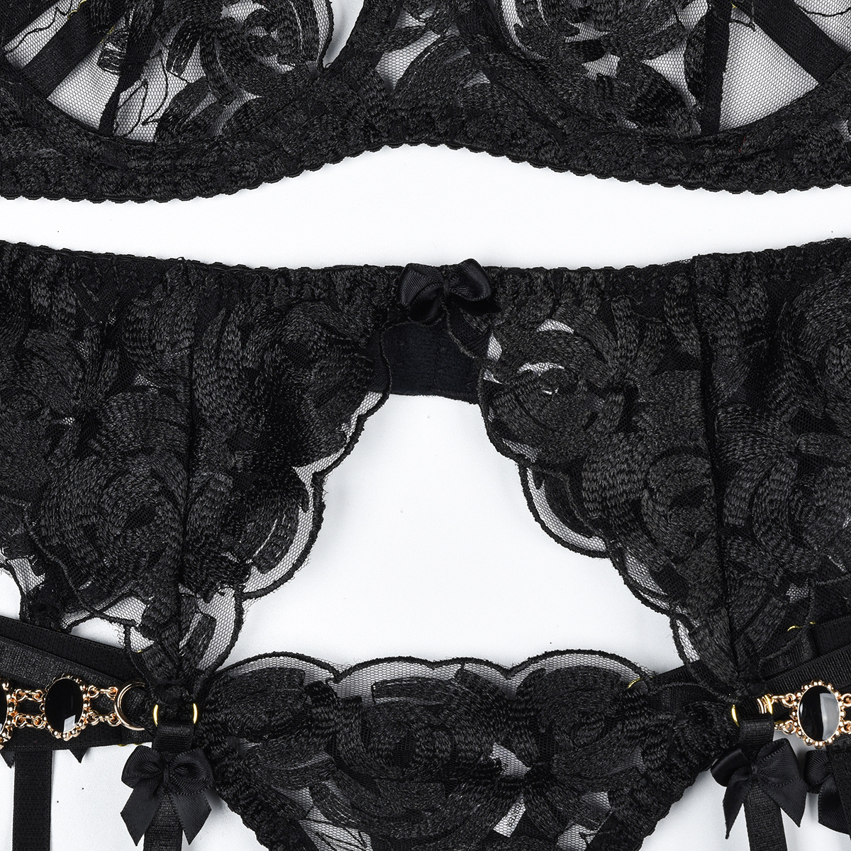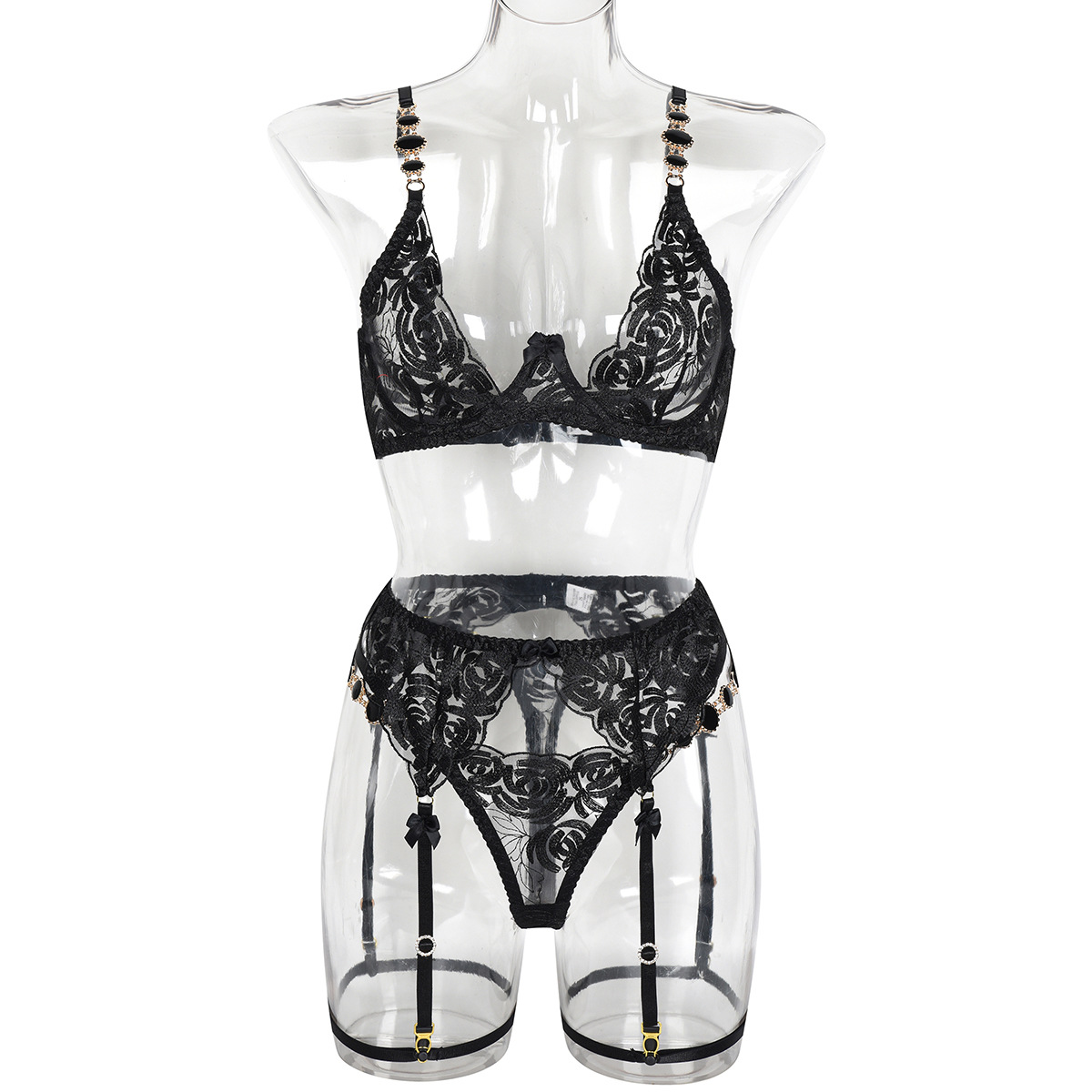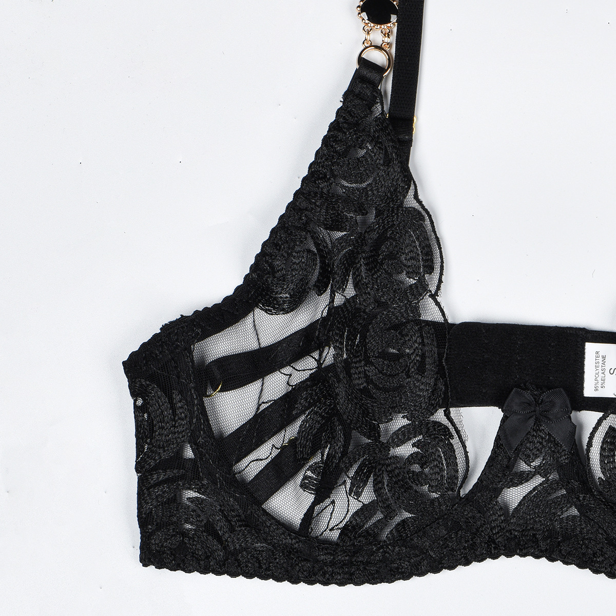 INS AliExpress Hot Selling New European and American Style Retro Gemstone Embroidered Bra Sexy Gather Underwear Women 3418
