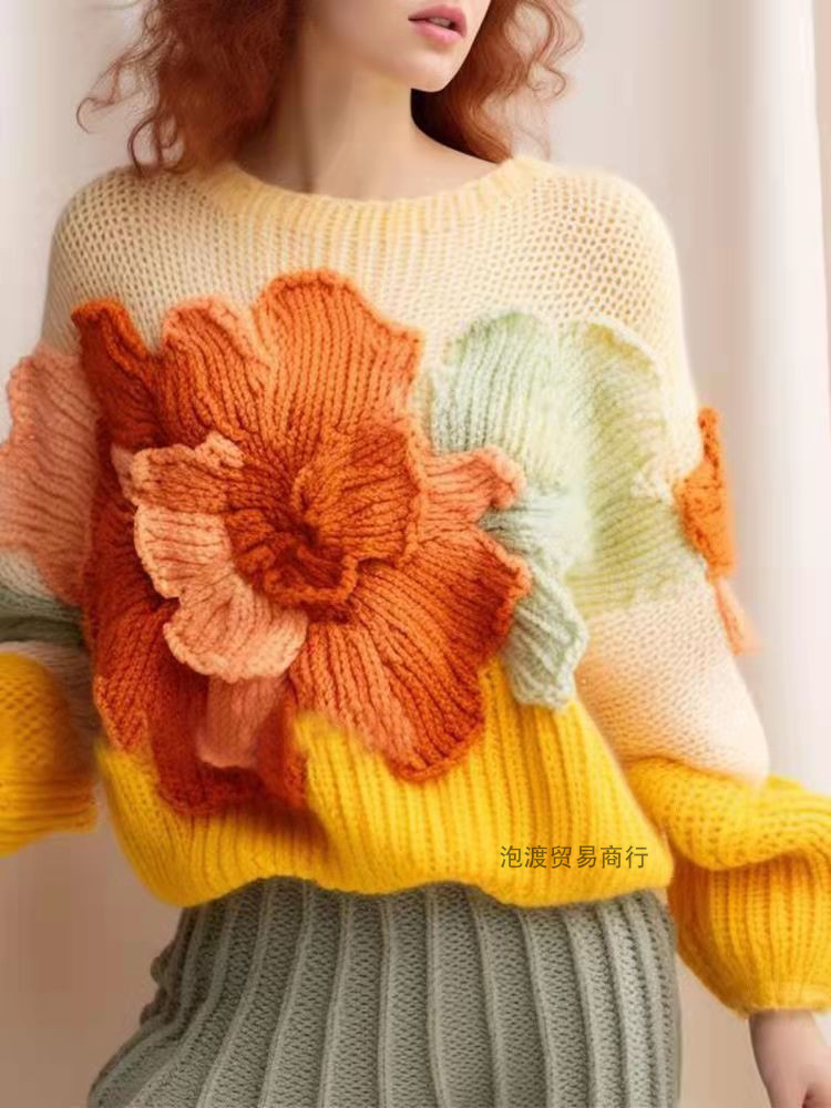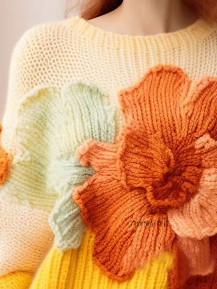 Autumn and winter age-reducing small size western style candy color yellow national style knitted top women's temperament high-end 2024 new style