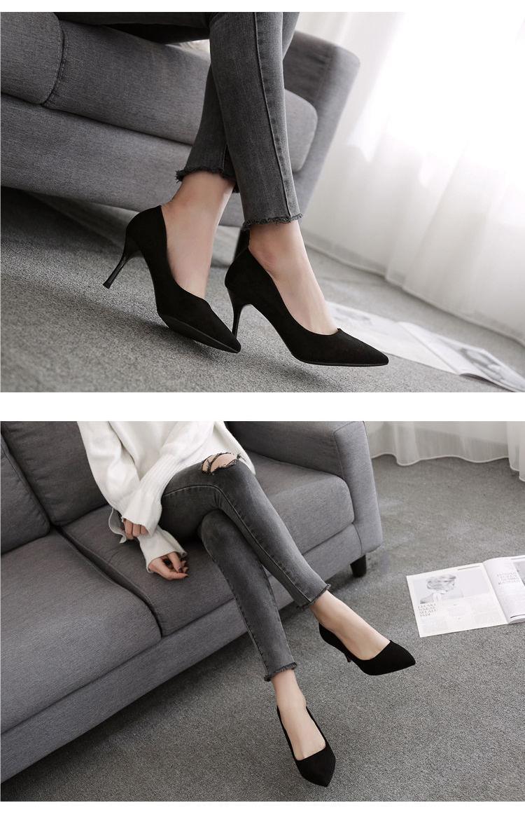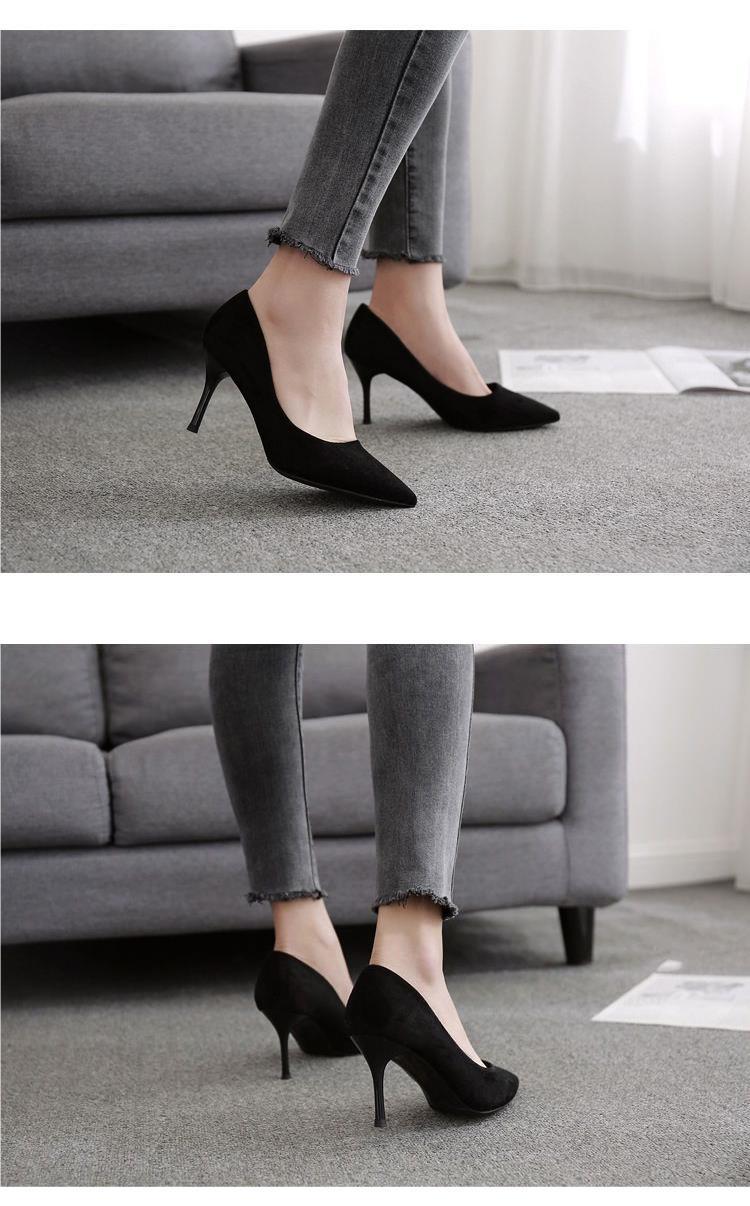 K-Style 2022 Spring and Autum New Black High-Heeled Shoes Women's Stiletto Professional Versatile Pointed Toe Formal Work Shoes