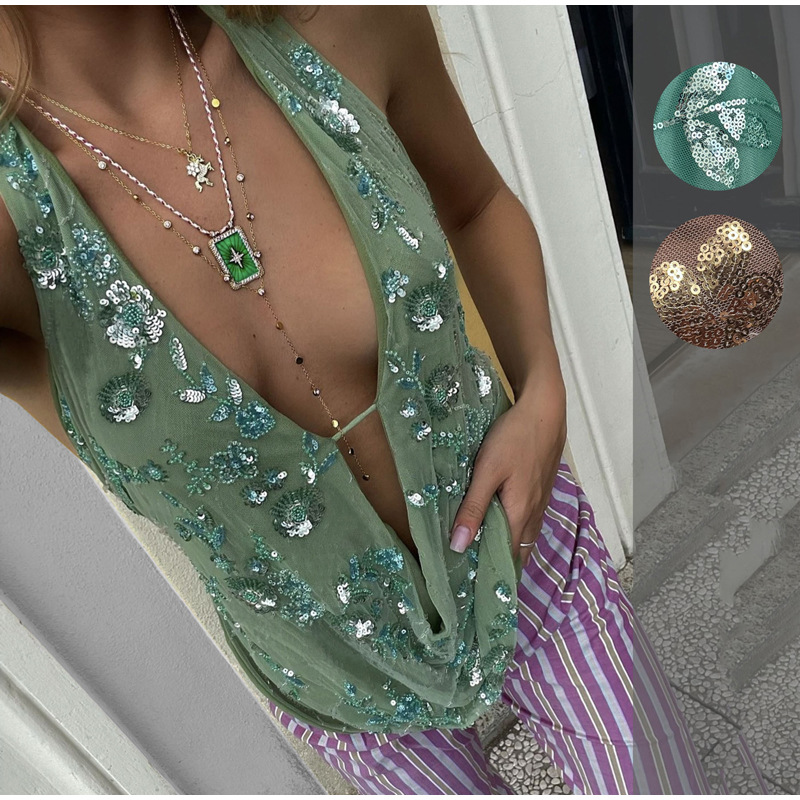 European and American Cross-border 2025 Summer New Fashion Sexy Design Backless Deep V-neck Halter Strap Short Top for Women