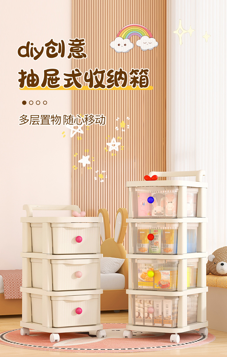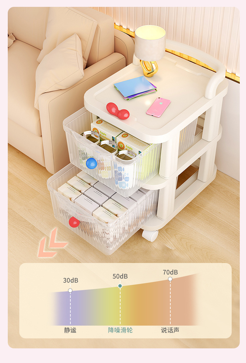 Ins Style Trolley Drawer-type Storage Cabinet Multi-functional Snack Storage Rack Household Living Room Bedroom Storage Cabinet