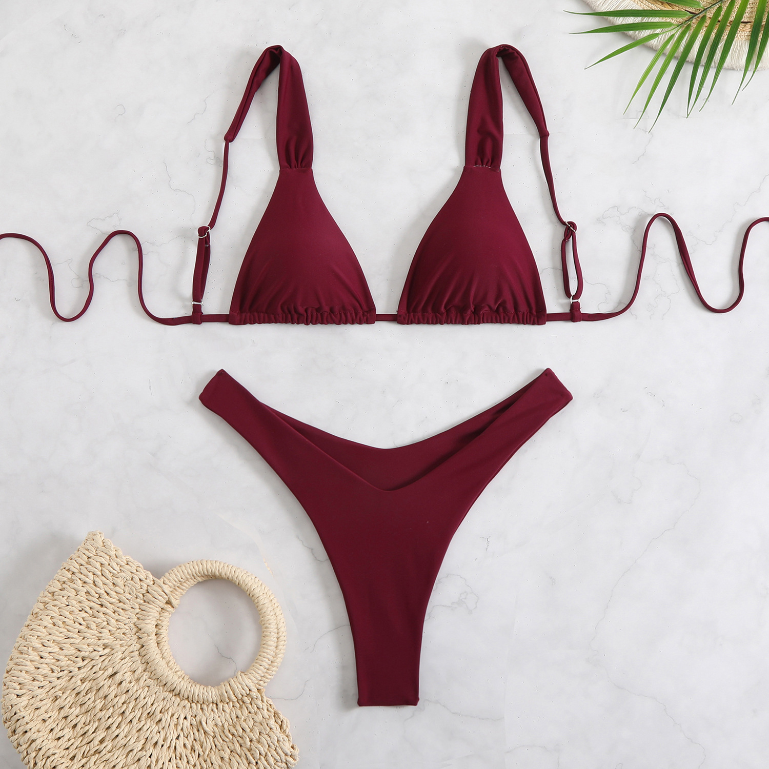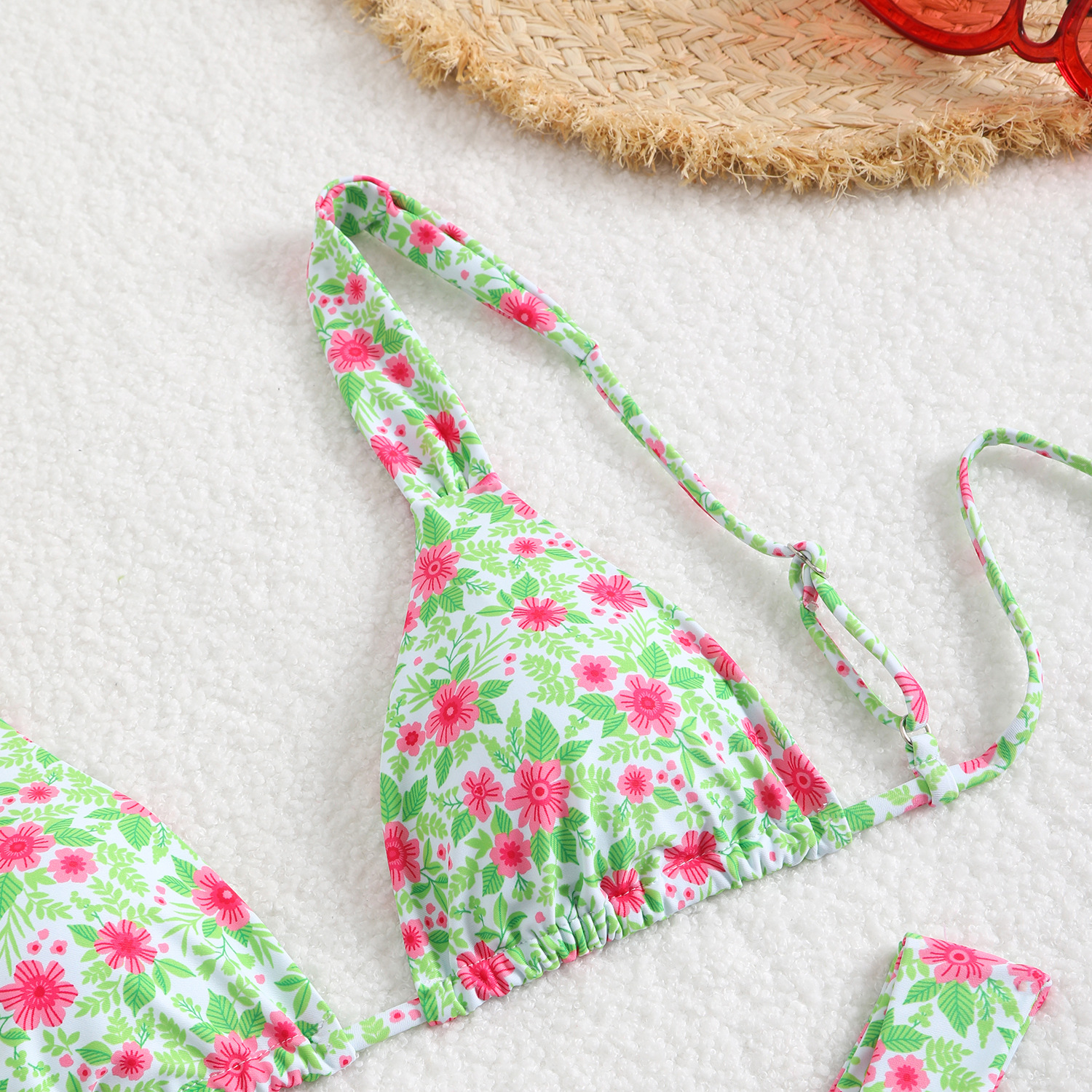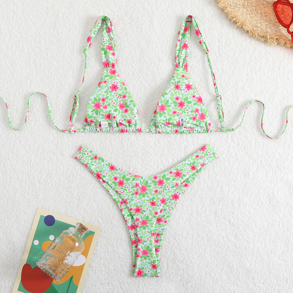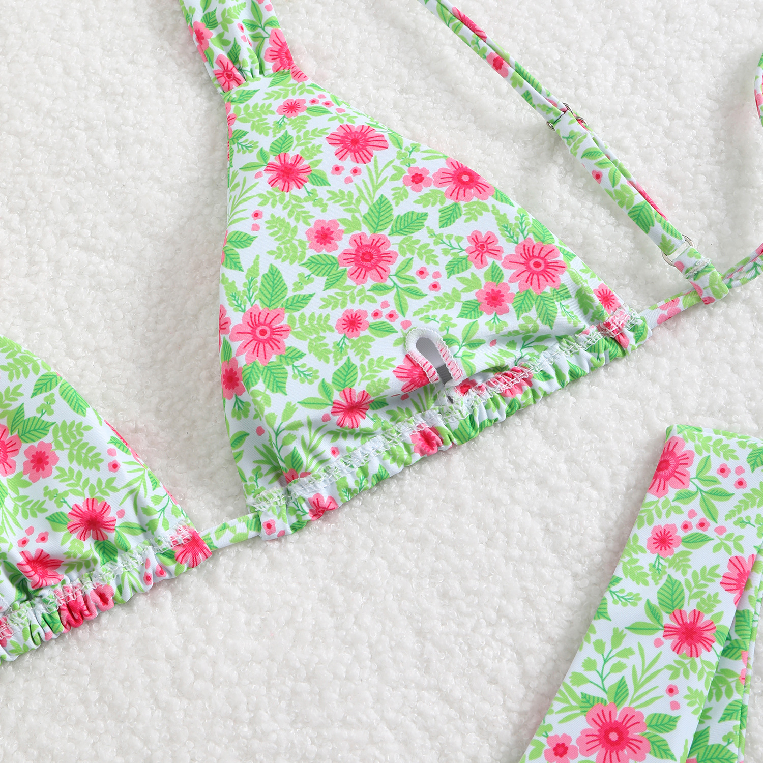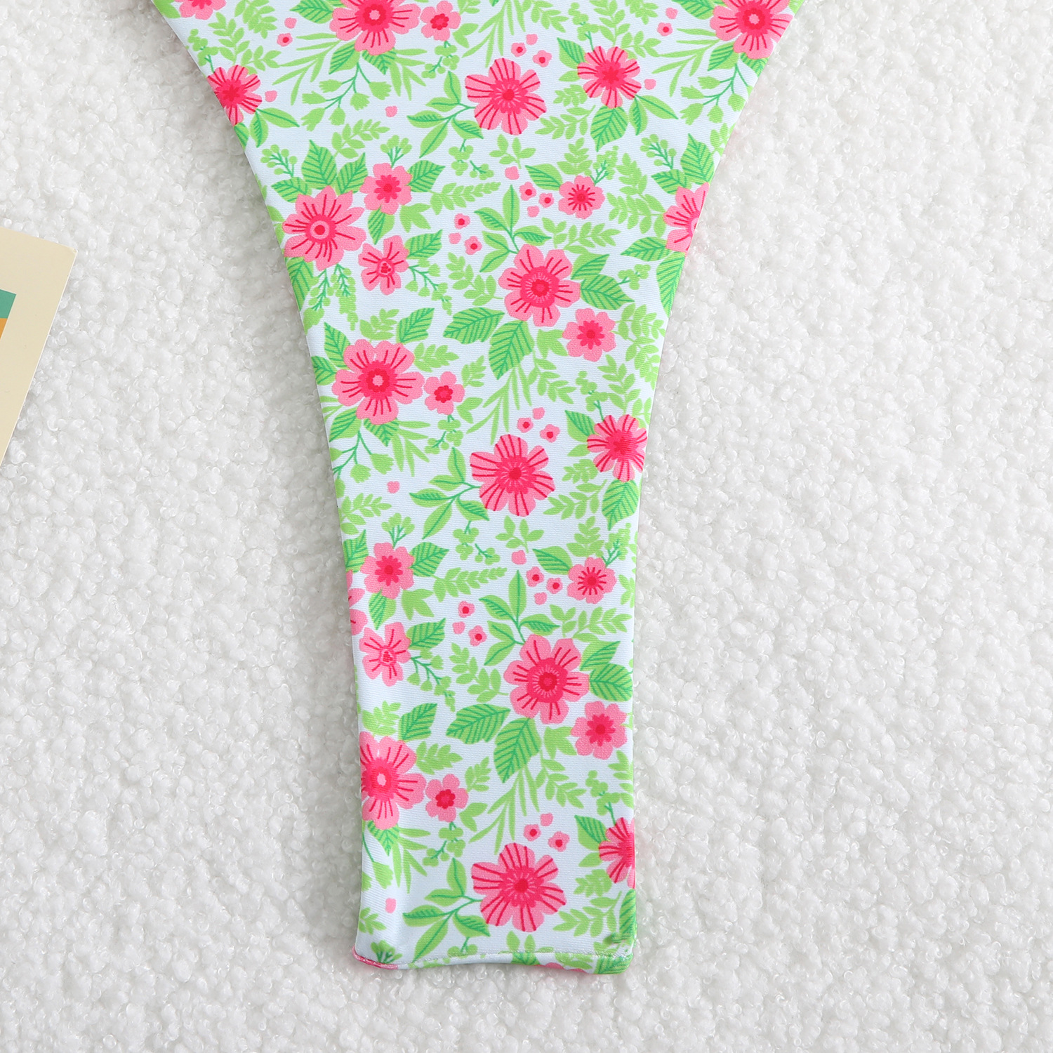 2025 new European and American cross-border bikini ladies split swimsuit solid color neck lace floral swimsuit wholesale