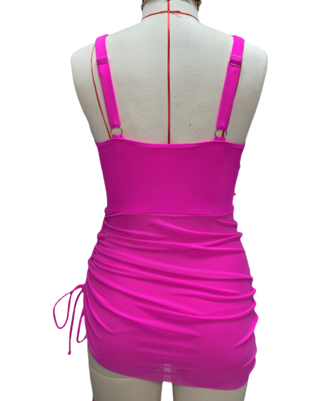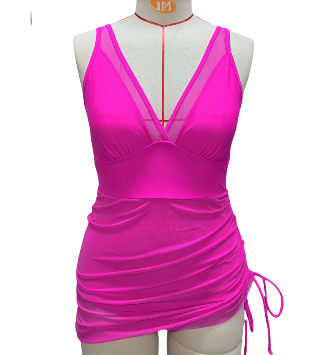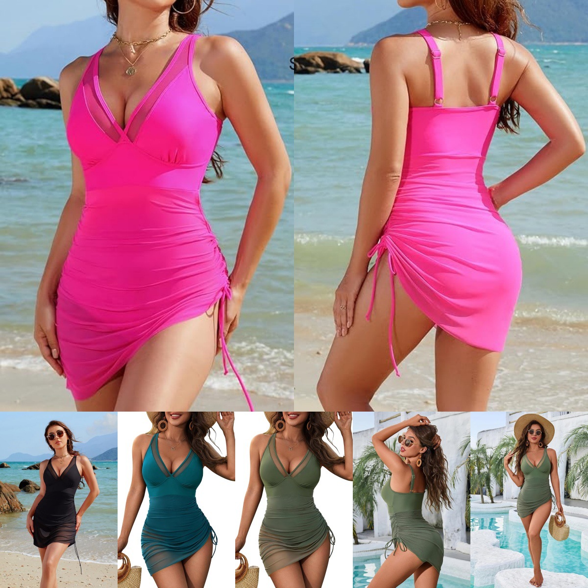 2025 new European and American cross-border Amazon one-piece skirt swimsuit mesh sexy lace-up swimsuit hip