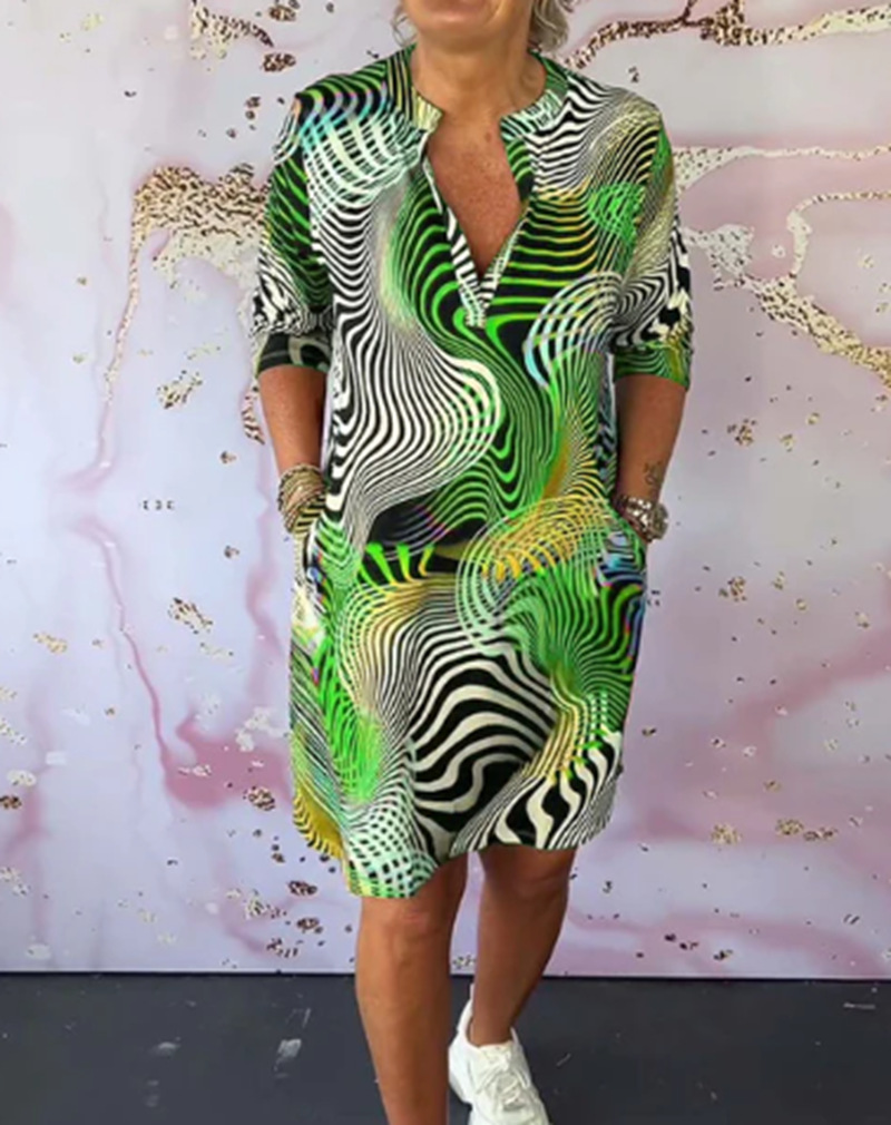Foreign Trade Summer New Amazon Cross-border European and American Women's Elegant Elegant Printed V-neck Seven-point Sleeve dress Women