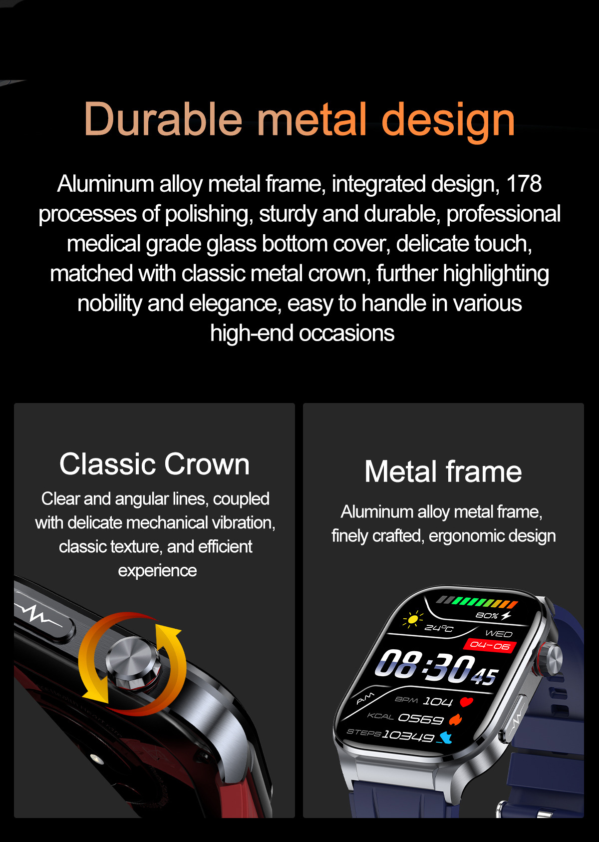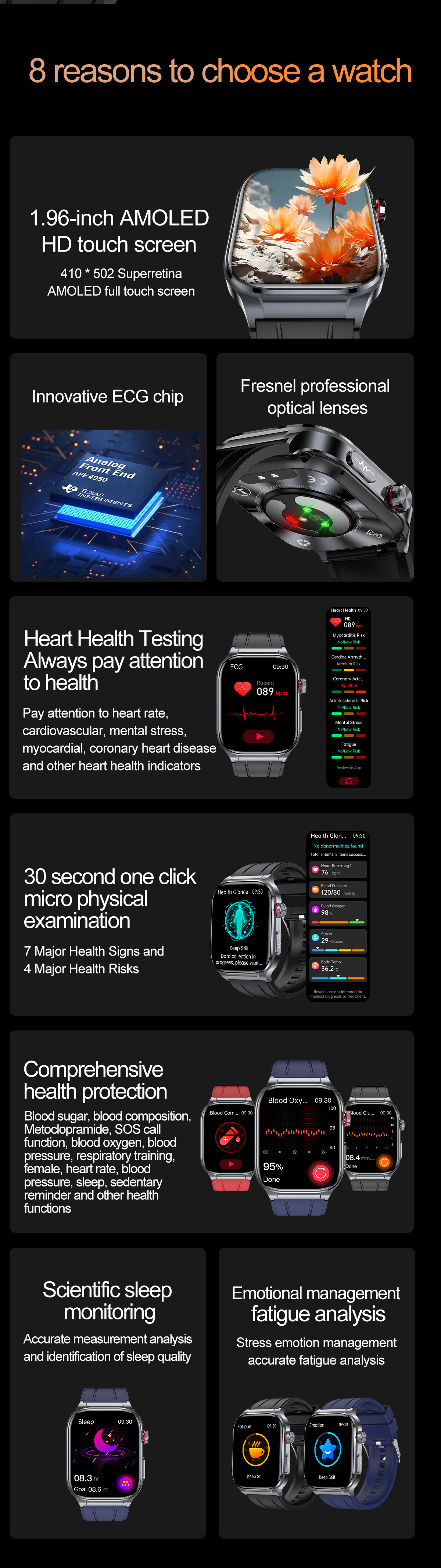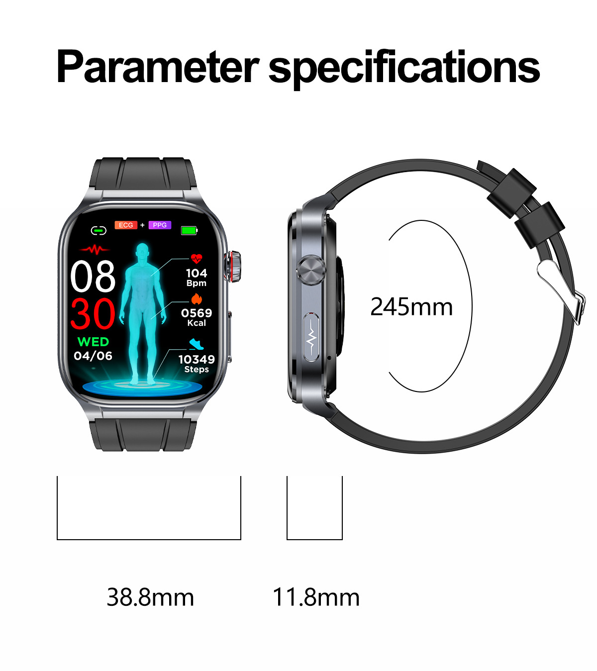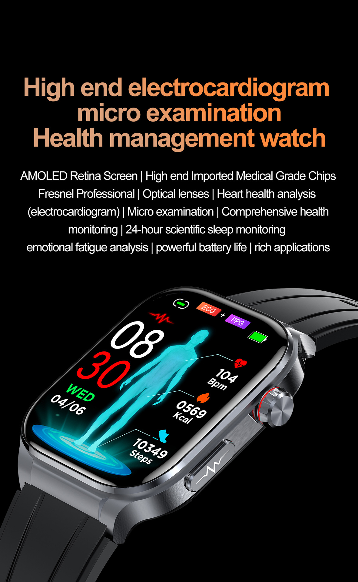 New ET588 Bluetooth Talk Watch TI Chip ECG Heart Rate Blood Oxygen Blood Pressure Blood Sugar NFC HD AMOLED