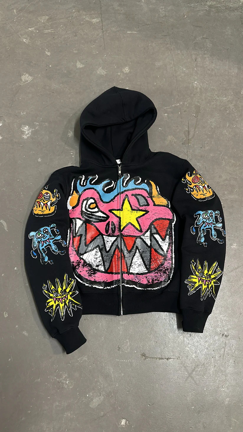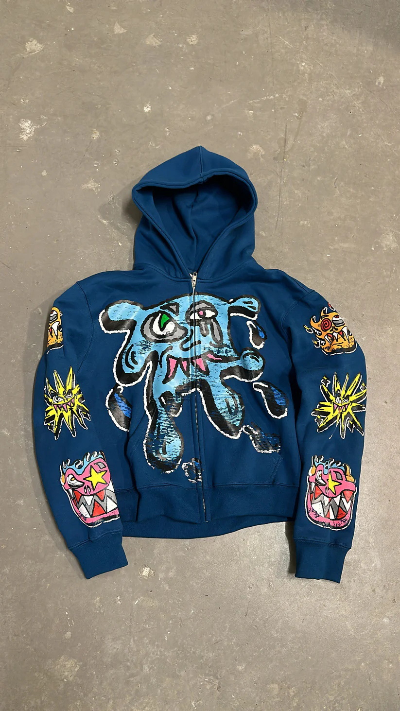 Cartoon Print Y2K Vintage Men's and Women's Loose Pullover Hoodie Sweater