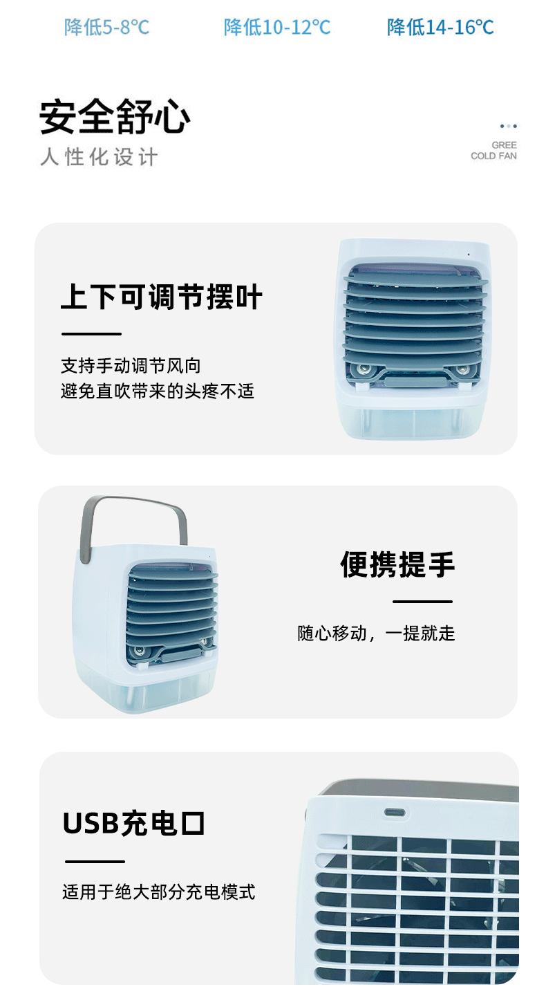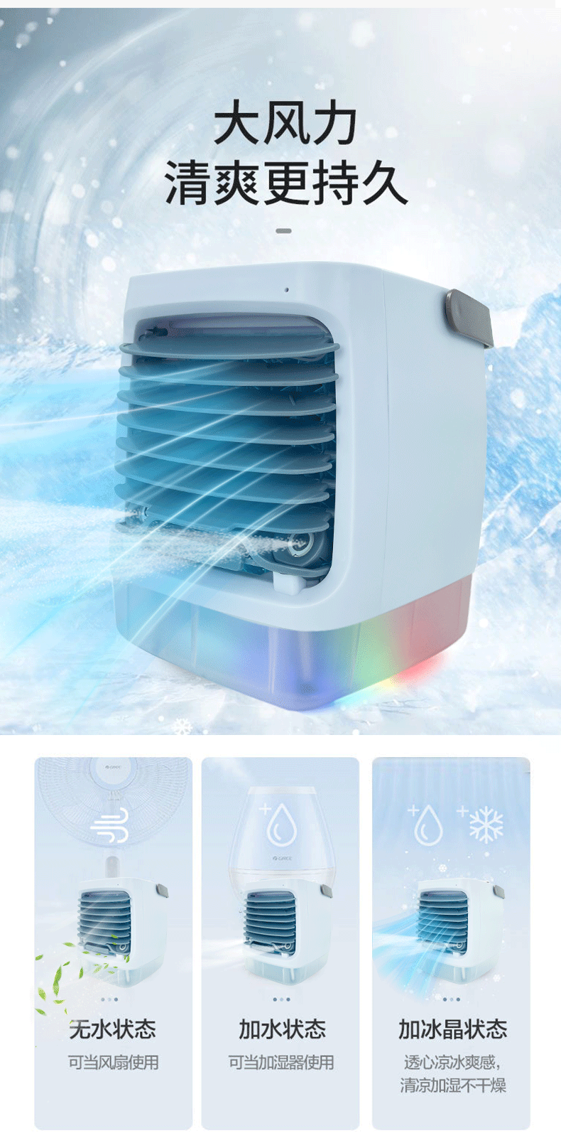 Cross-Border Colorful Spray Air Cooler USB Rechargeable Desk Fan Portable Refrigeration Humidification Night Light Air Conditioning Fan