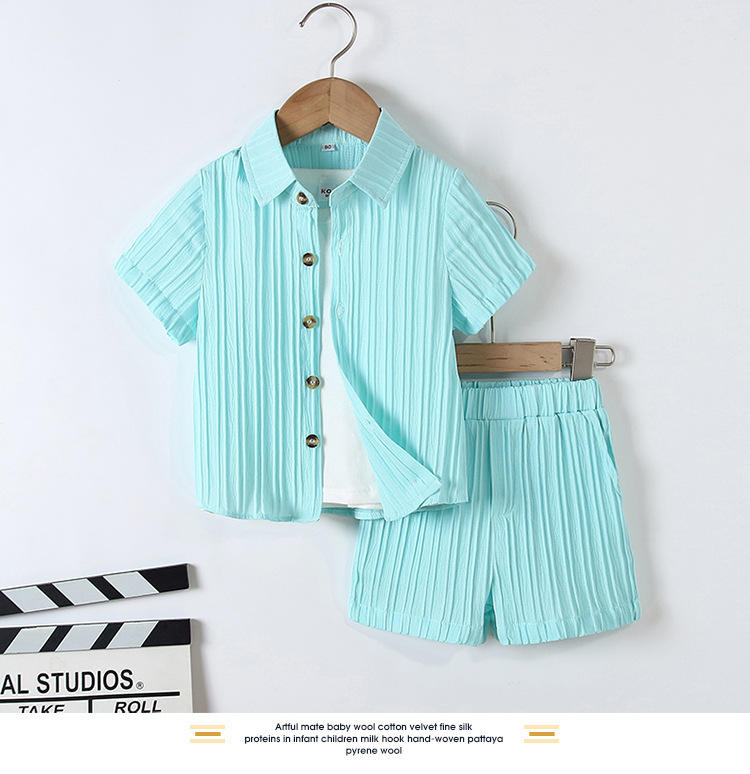 Boys Handsome Gentleman suit Summer Clothing Academy Style Children's Thin Shirt Fashionable Dress Men's Treasure Short Sleeve Shorts Clothes