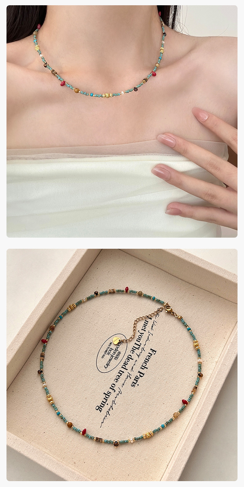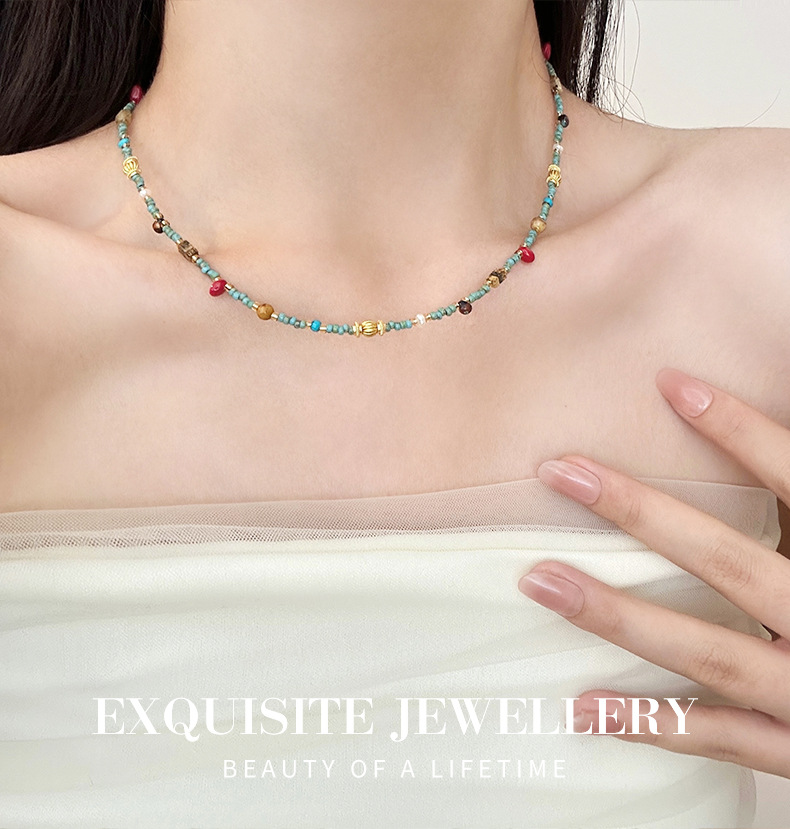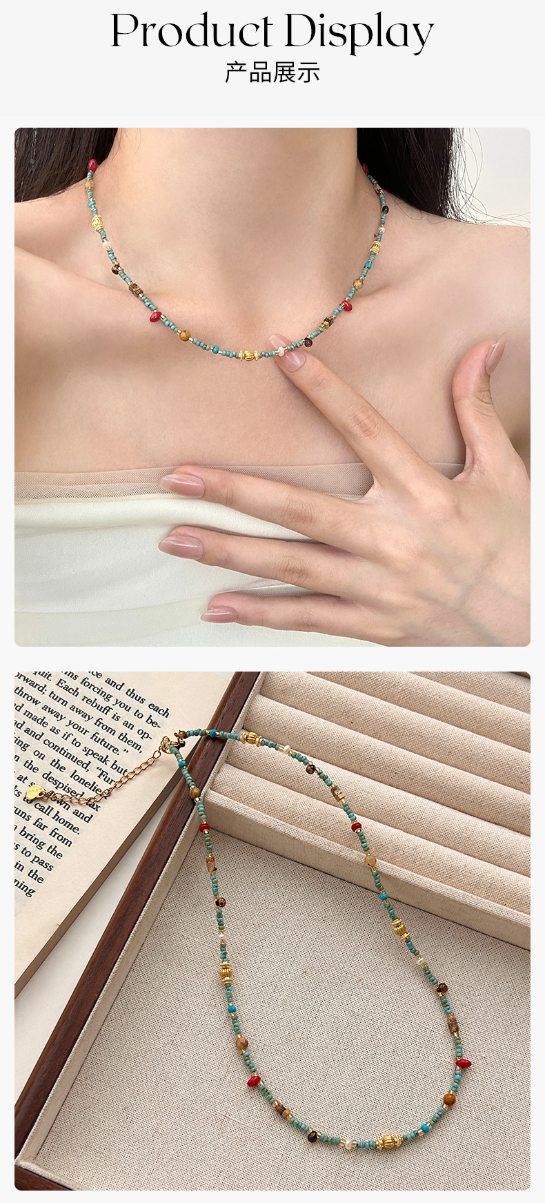 Natural Stone Turquoise Beaded Necklace Women's 2025 New High-End Accessible Luxury Niche Design Clavicle Chain Necklace