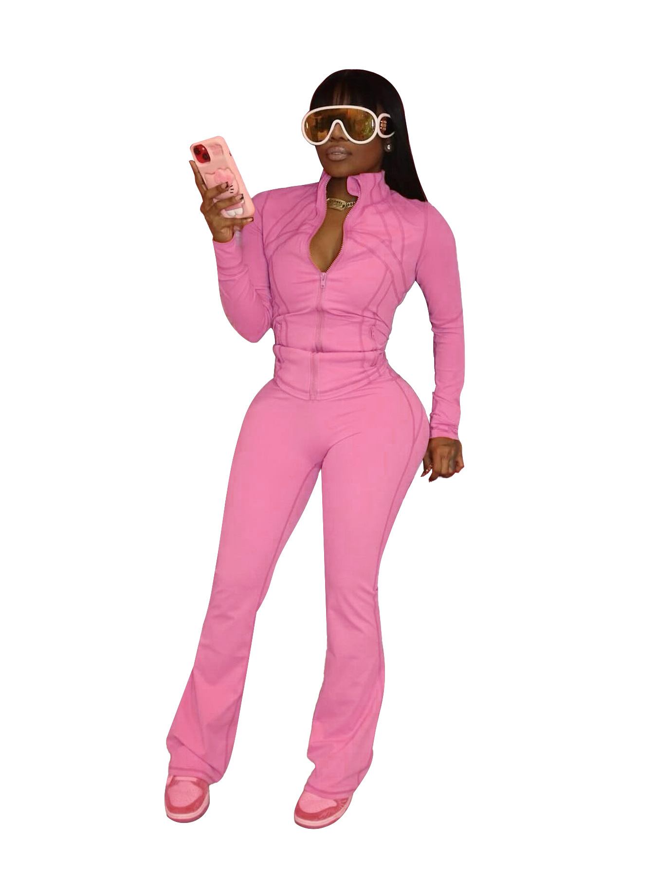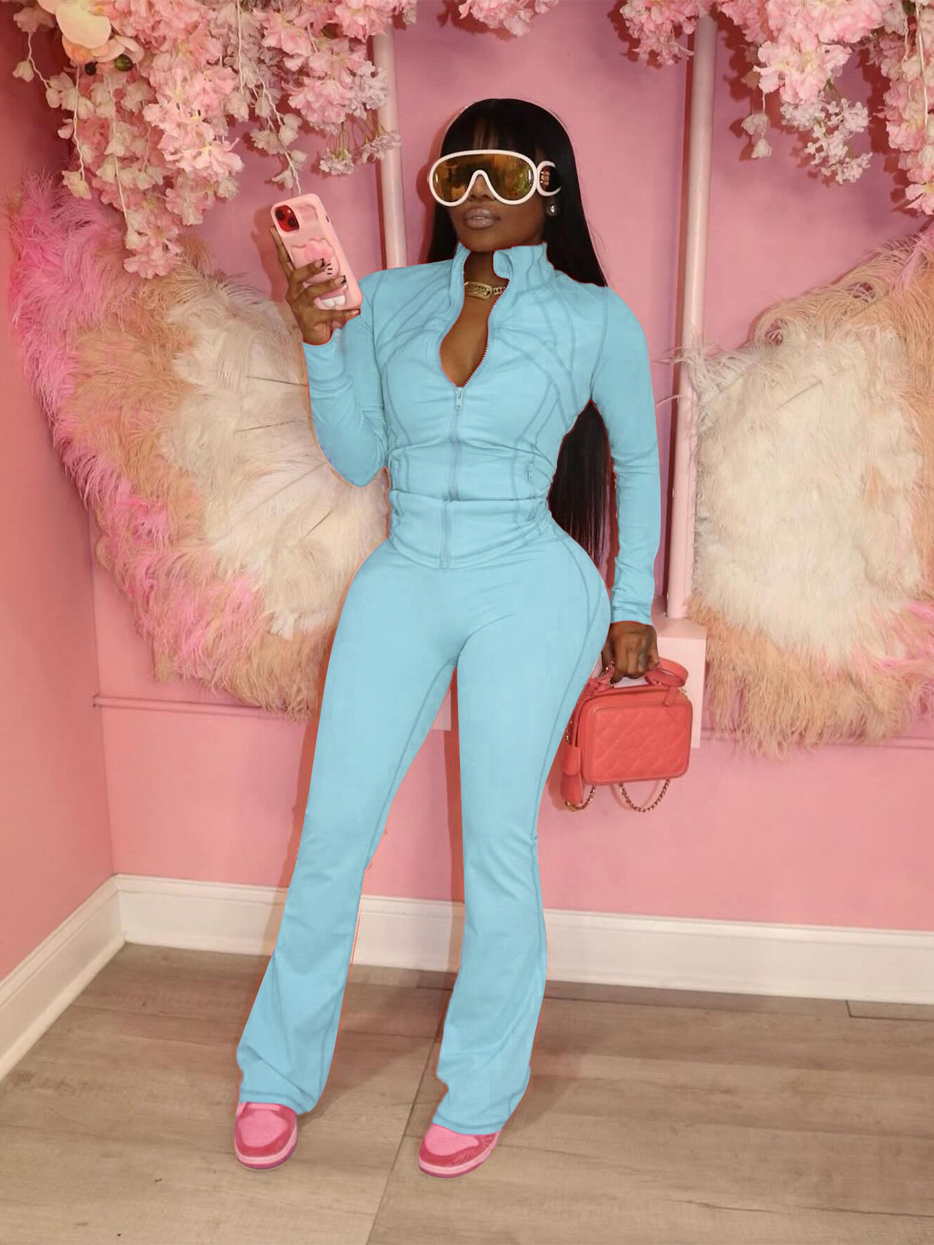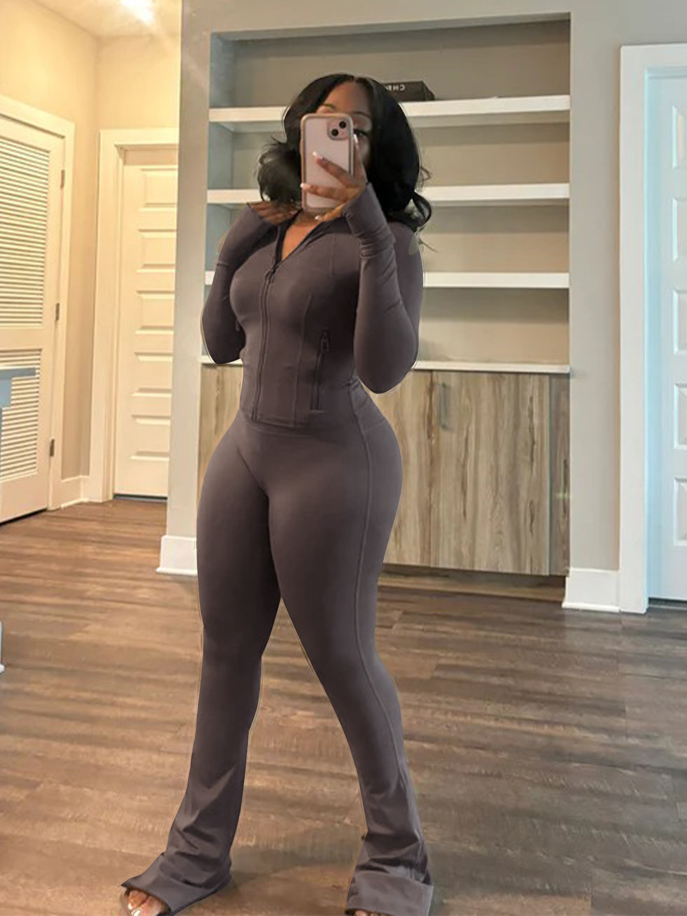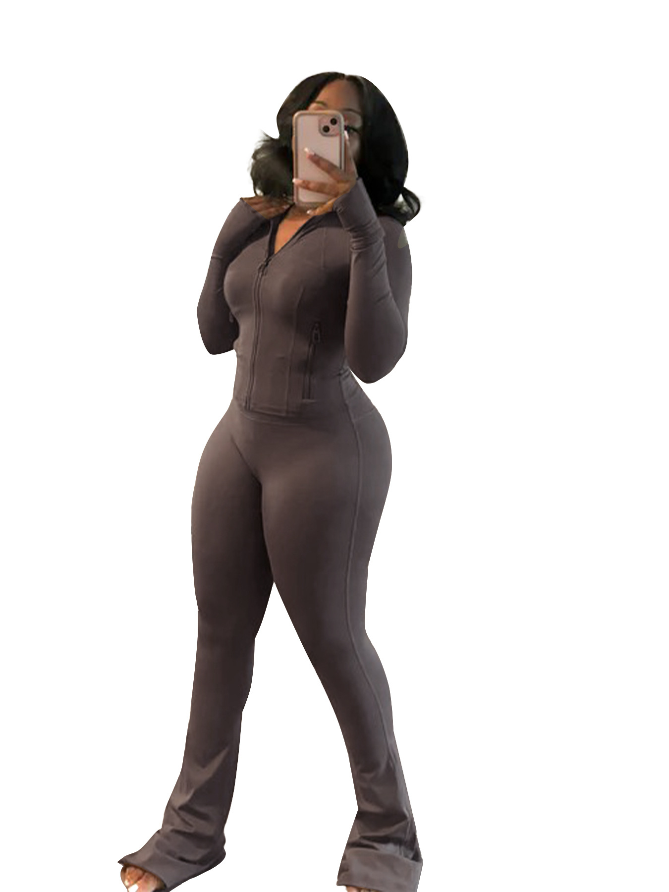 HR24057 European and American sports leisure women's cross-border supply sexy tight long sleeve micro horn two-piece set