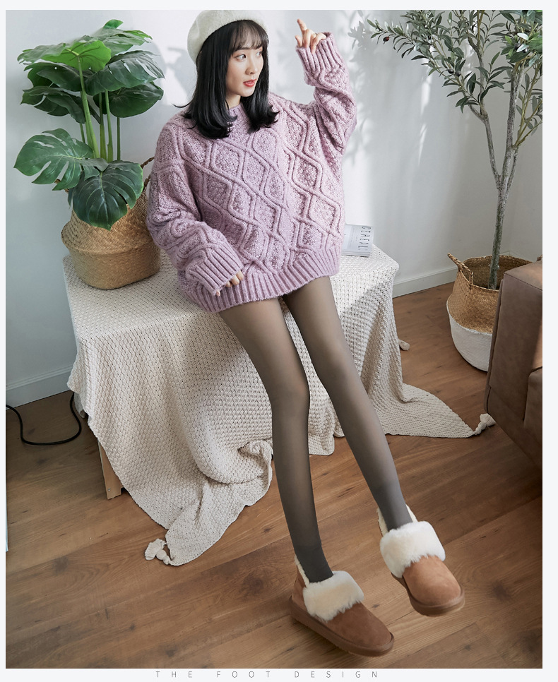 Cross-border Wear Autumn and Winter Fake Skin-transparent plus size Leggings fleece-lined Female Stewardess Grey Legs Thickened Pantyhose