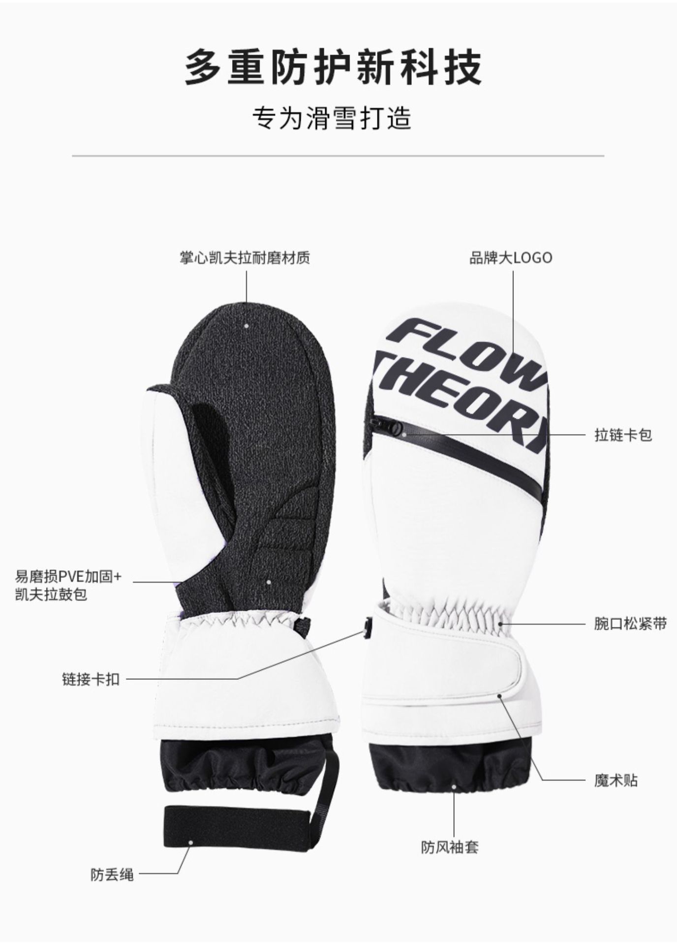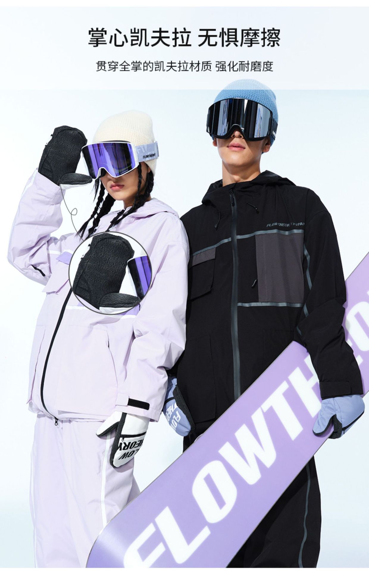 Full-palm Kevlar Ski Hand Outdoor Set Professional Engraved Slip Warm Wear-resistant Snowboard Inner Five-finger Double-board Cycling Gloves