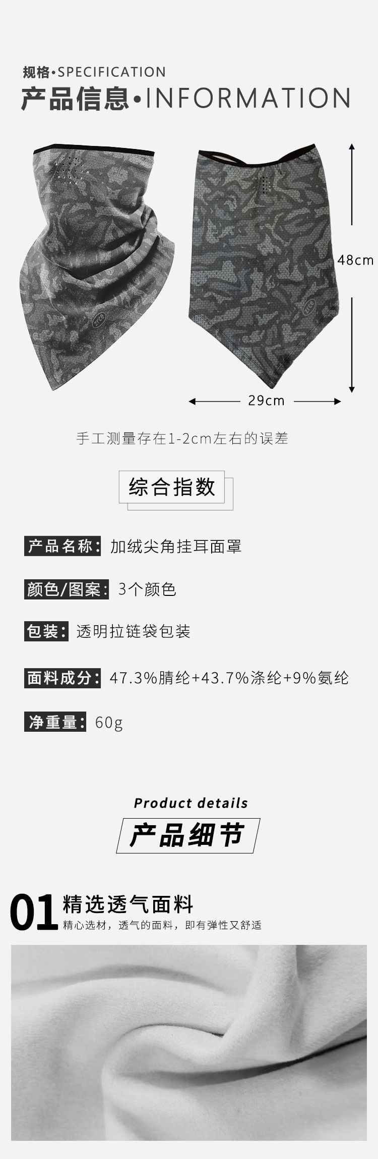 Cold-proof full face winter scarf cover face towel ski motorcycle warm face cover half face triangle towel riding mask for men