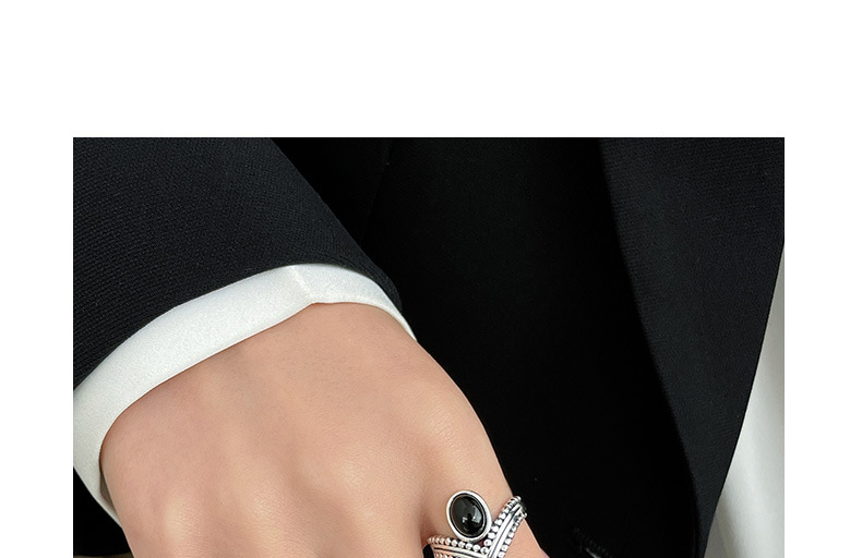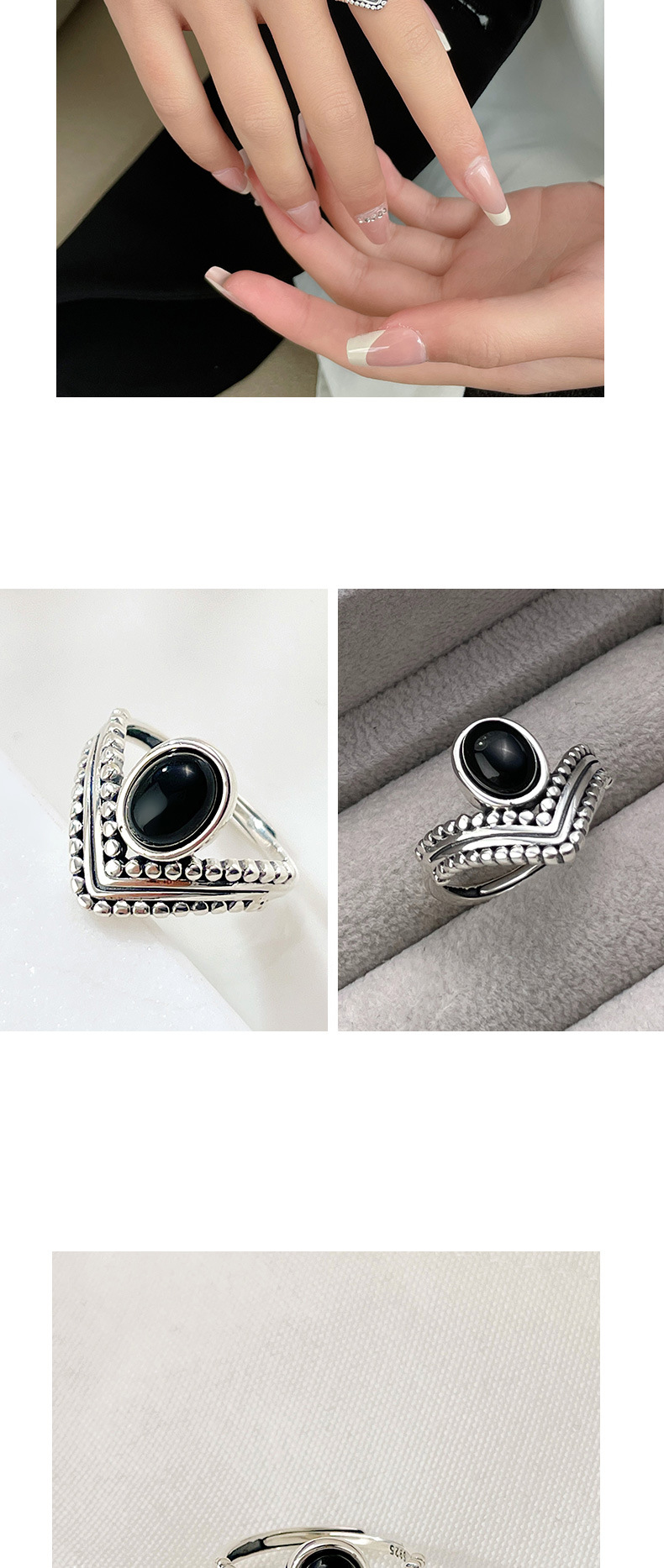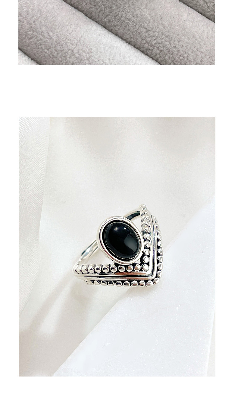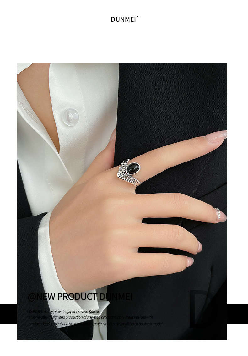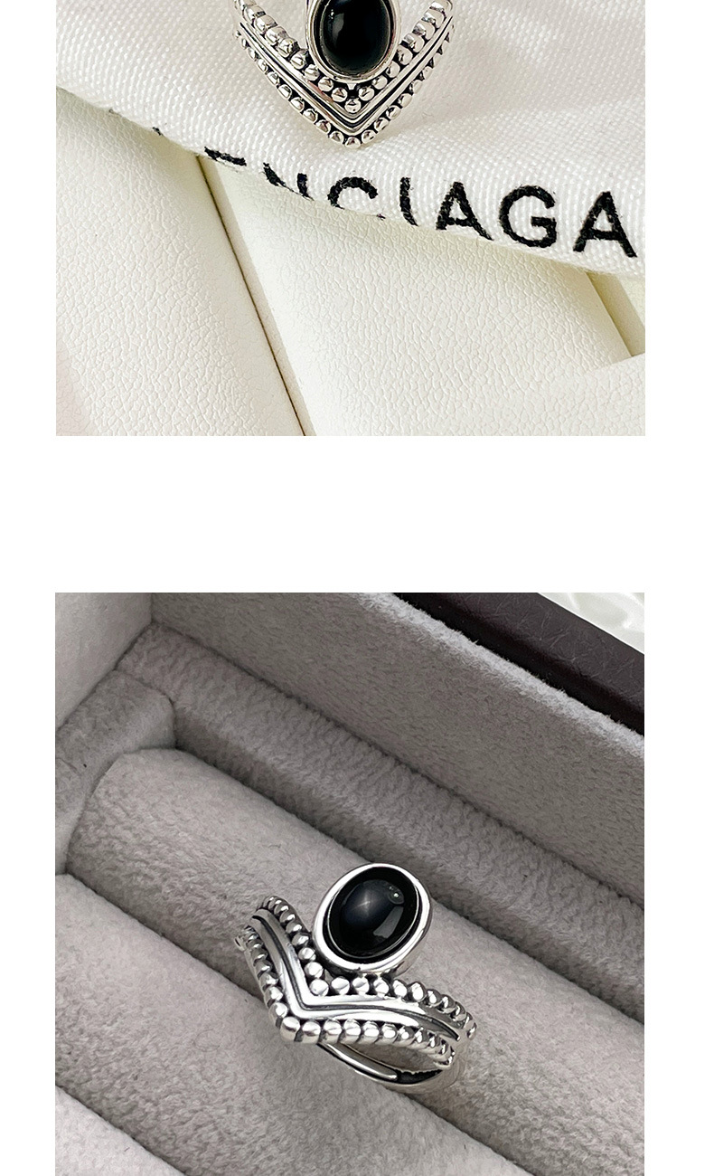 Little Red v crown ring fashion new creative bracelet S925 silver jewelry Thai silver black agate ring