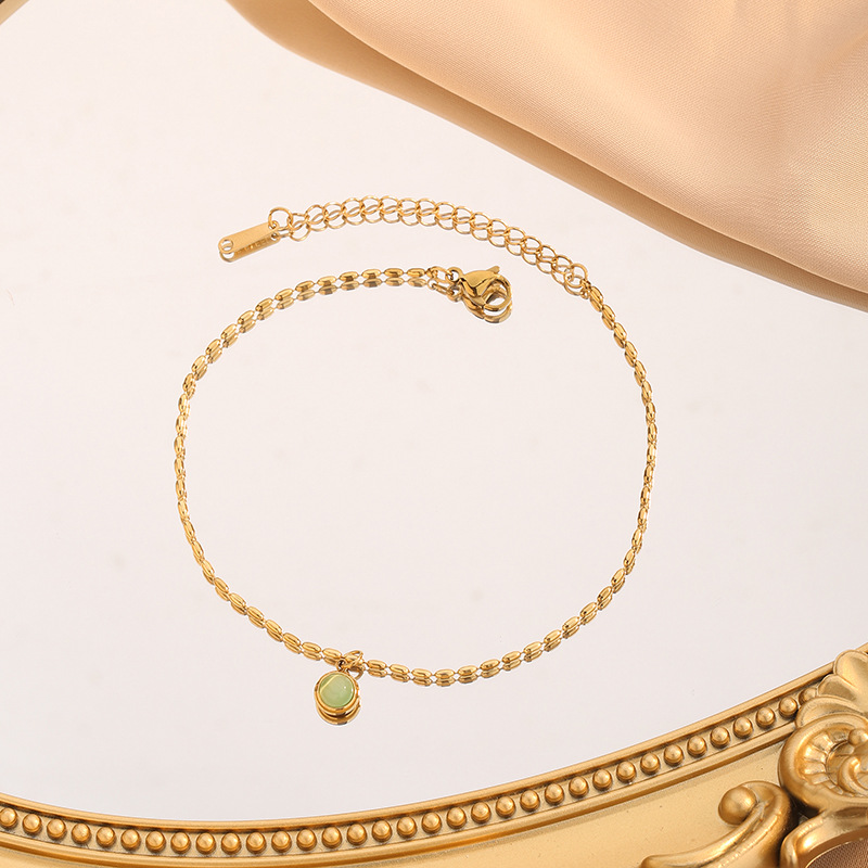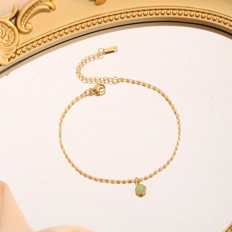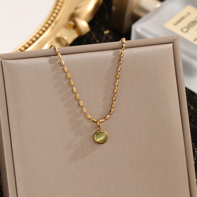 Vintage Fashion Small Golden Rice Design Necklace Women's K Gold Light Luxury High-end Sense Dongling Jade Green Bean Pendant Collarbone Chain