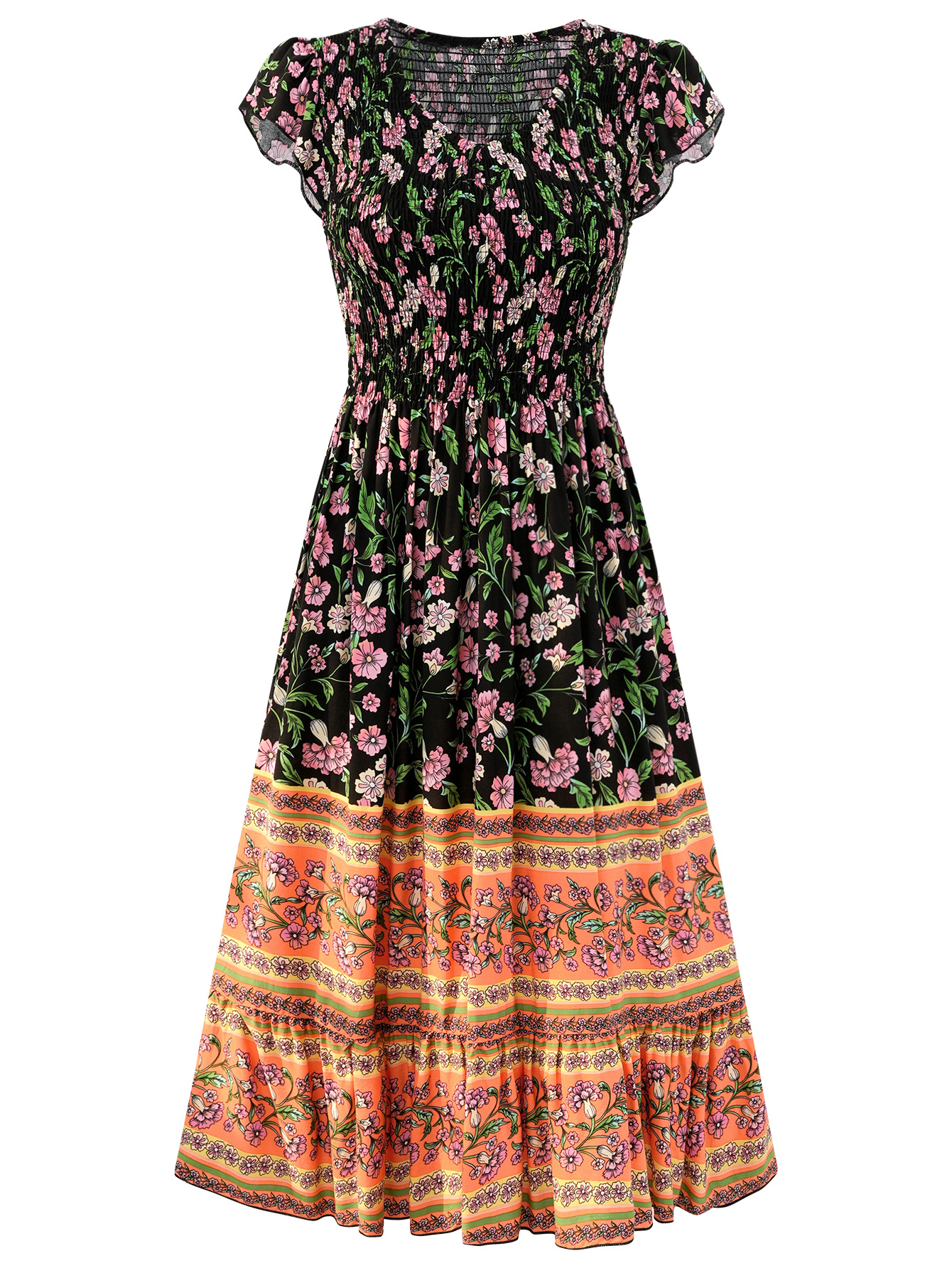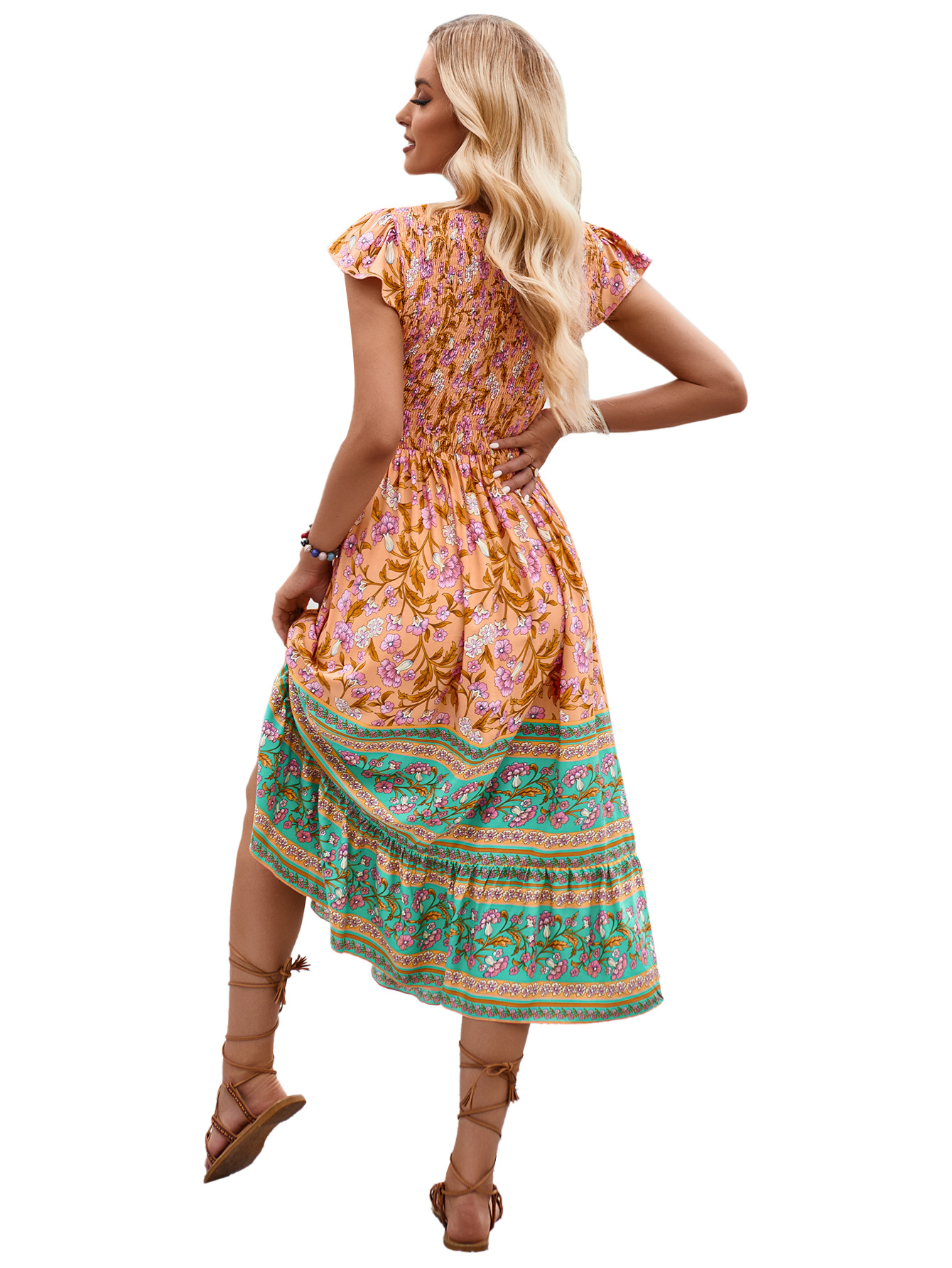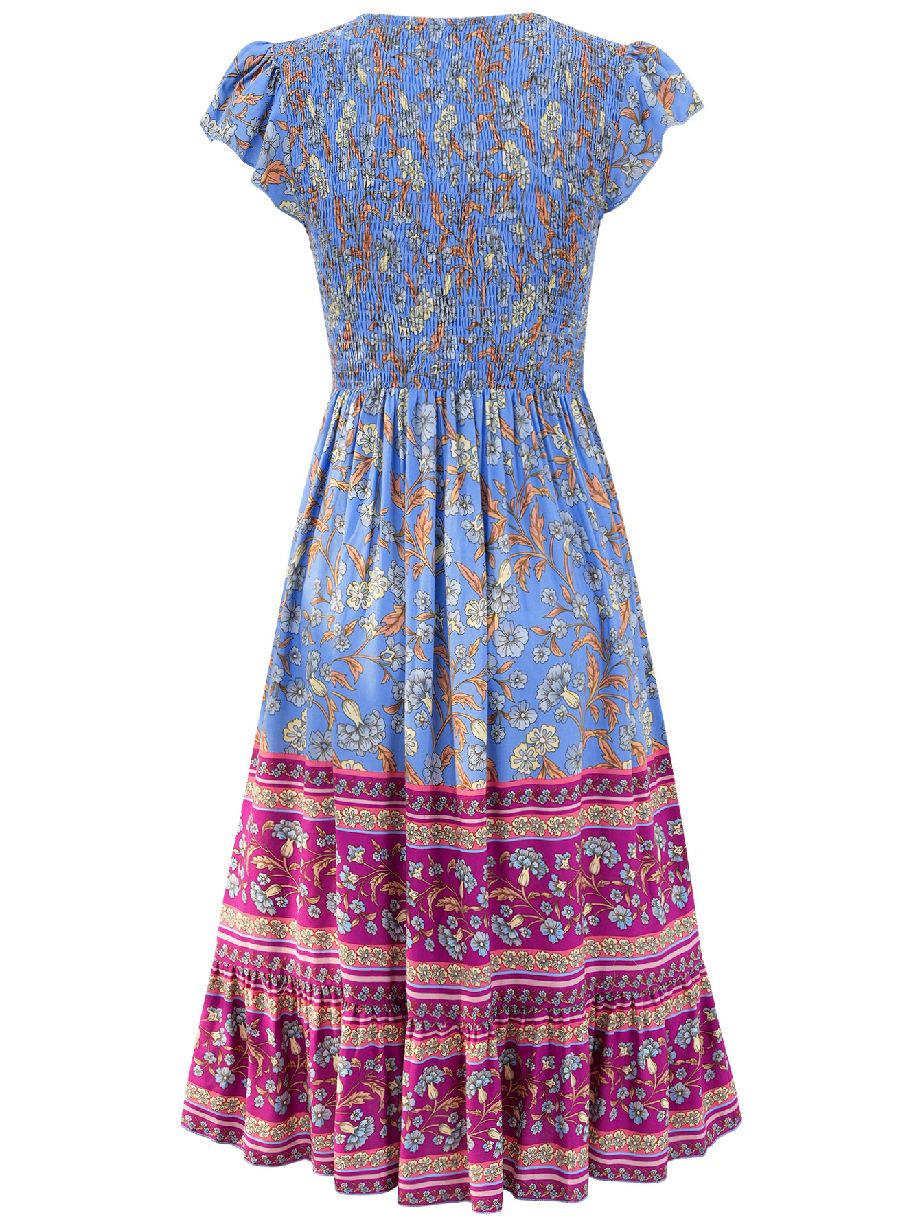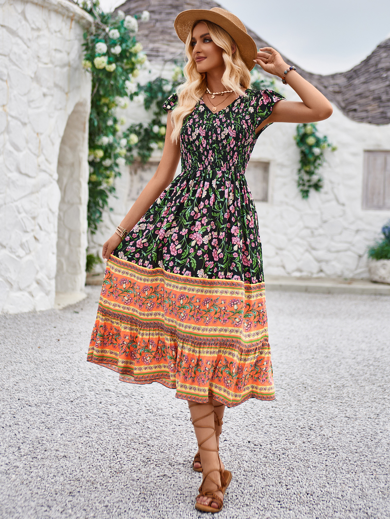 2024 summer casual dress Amazon new printed V-neck flying sleeve bohemian style dress