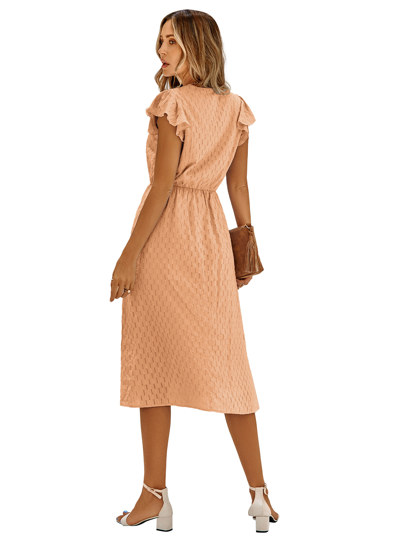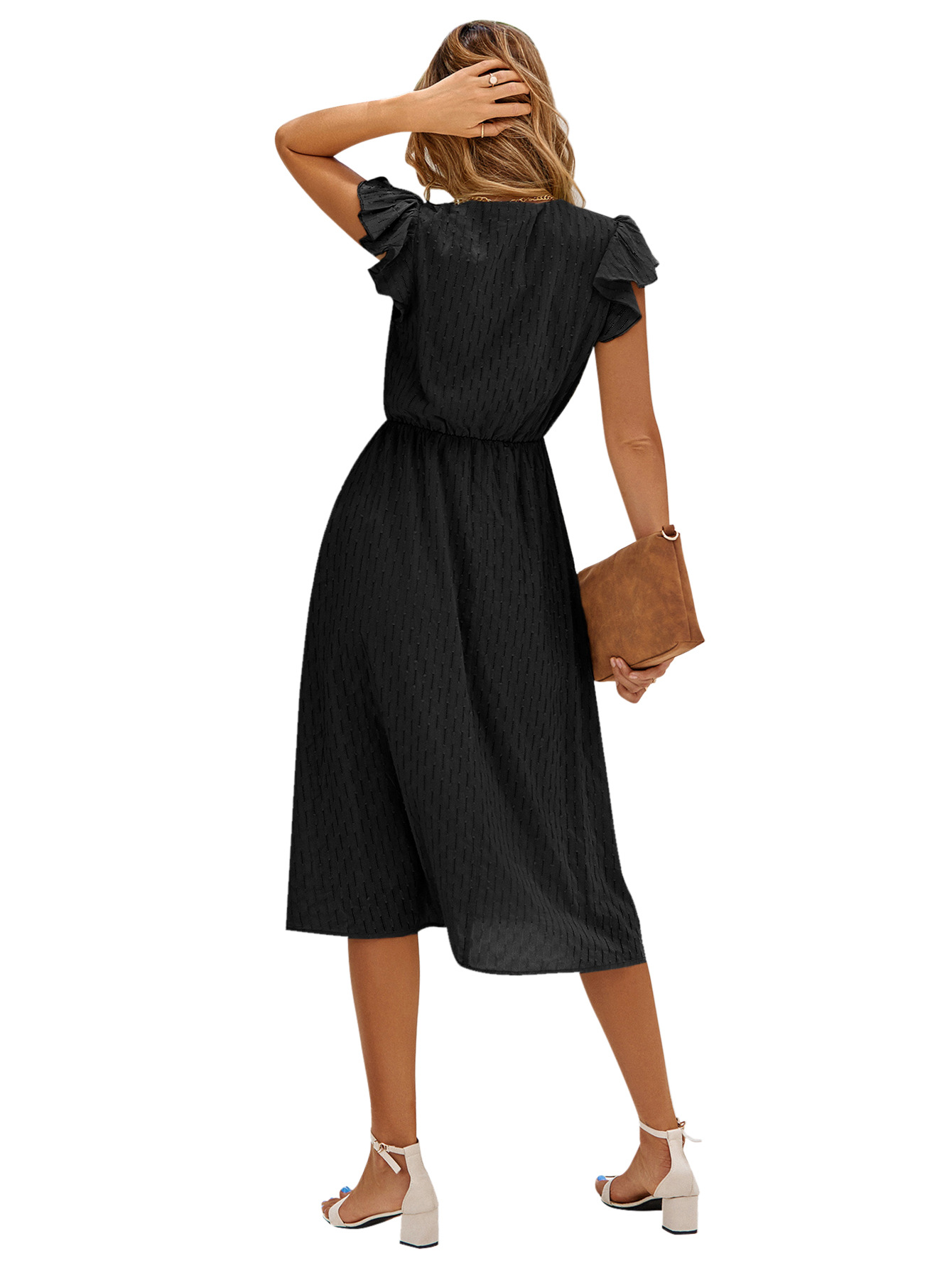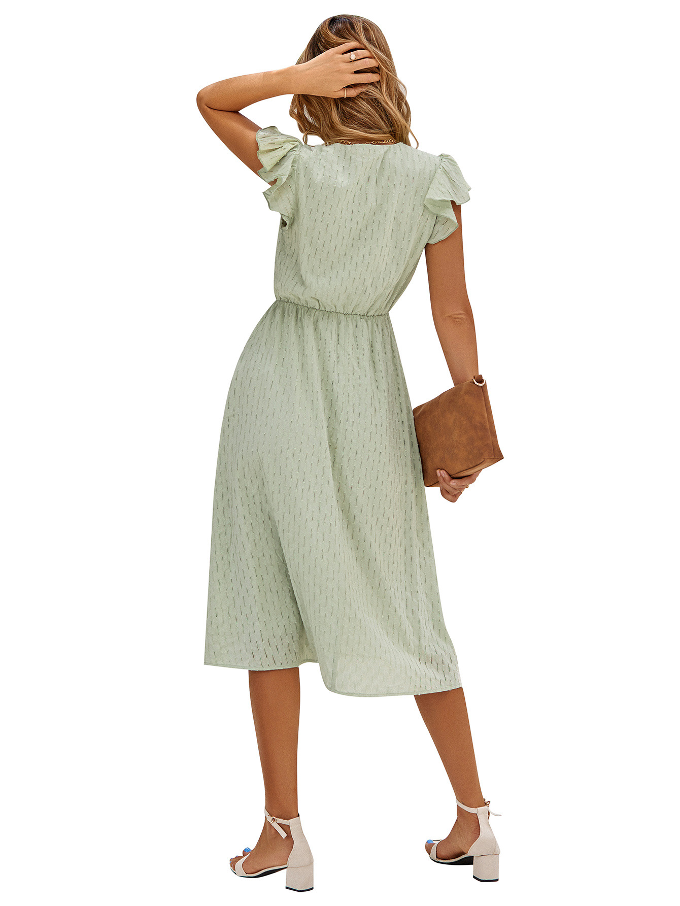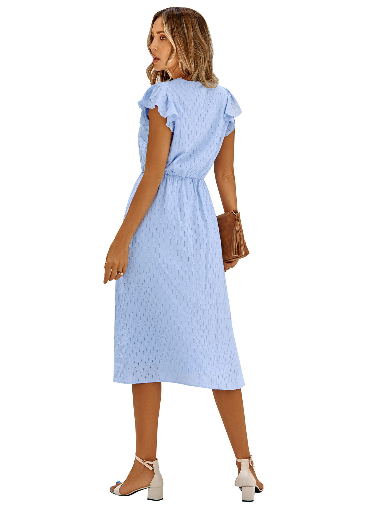 Independent station wish2024 summer new casual women's clothing European and American solid color V-neck tight waist fresh air dress women