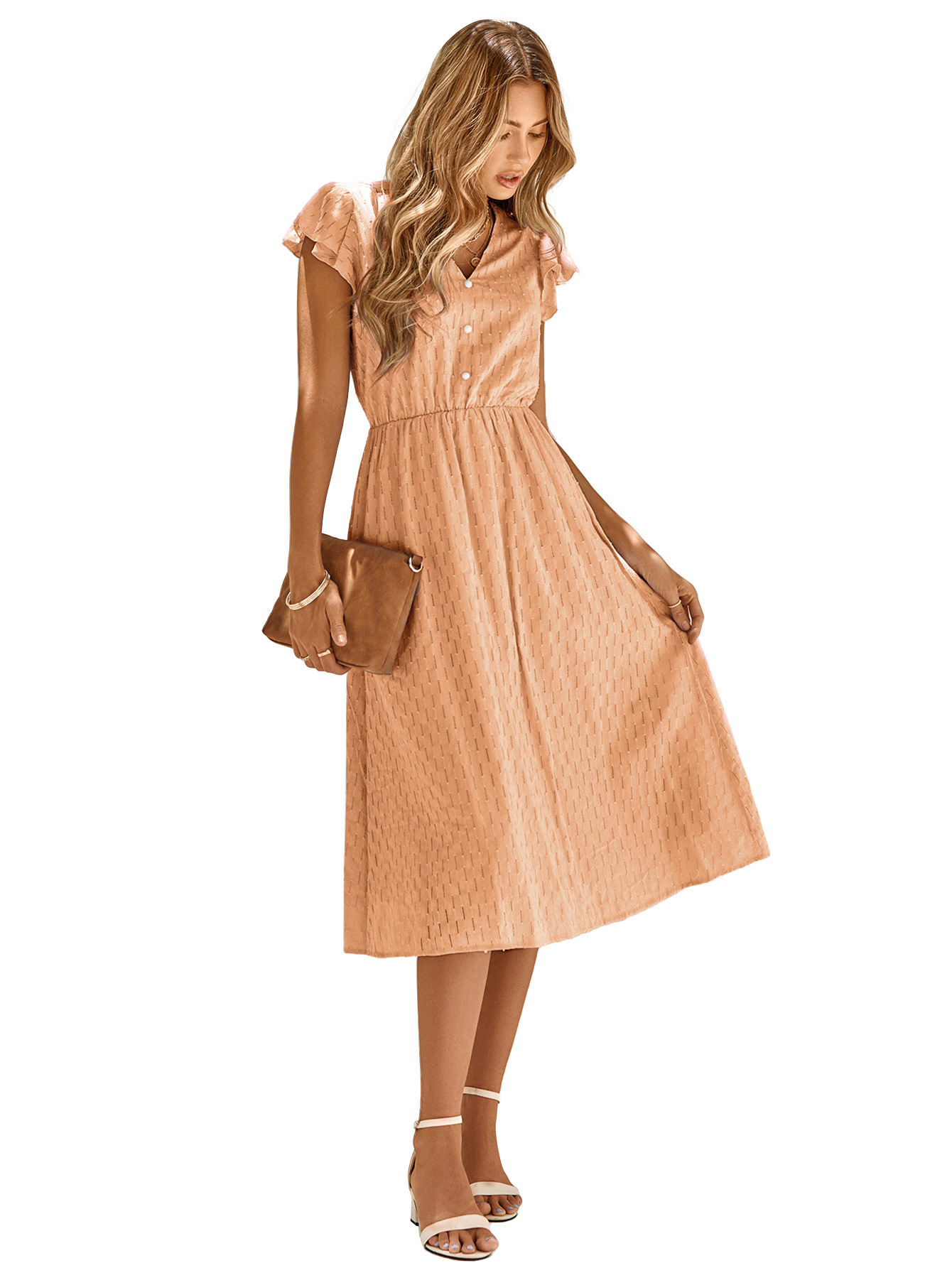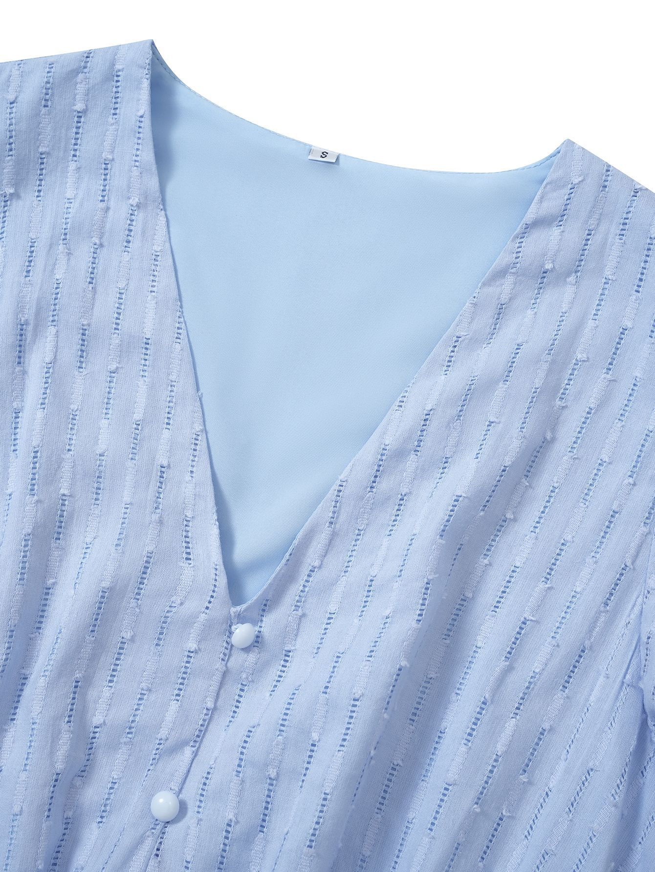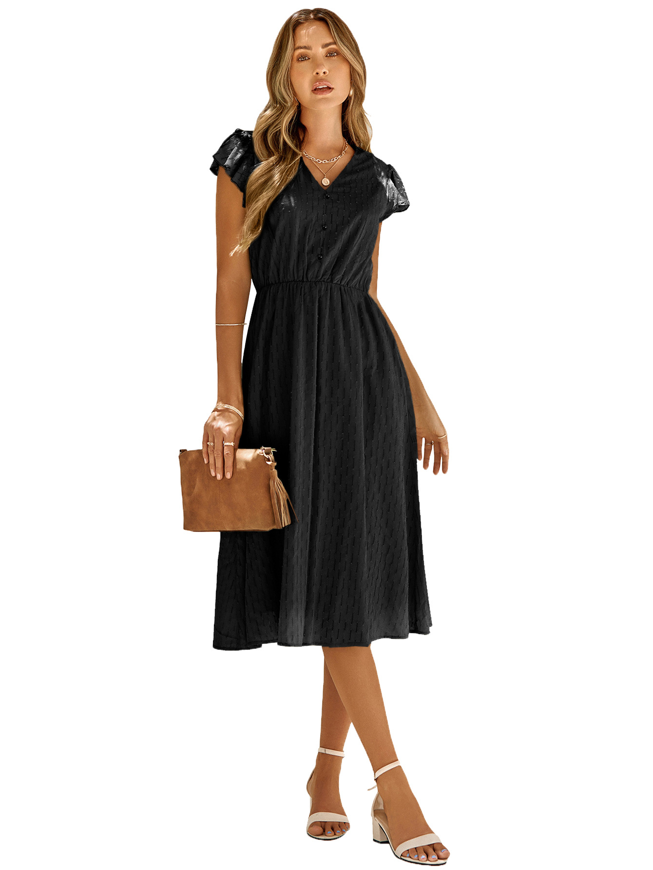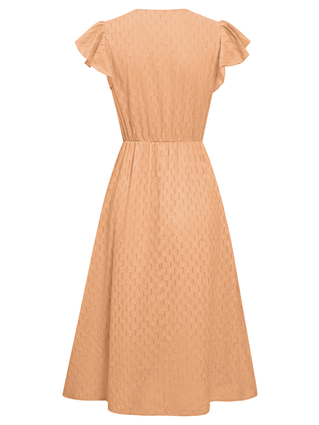 Independent station wish2024 summer new casual women's clothing European and American solid color V-neck tight waist fresh air dress women