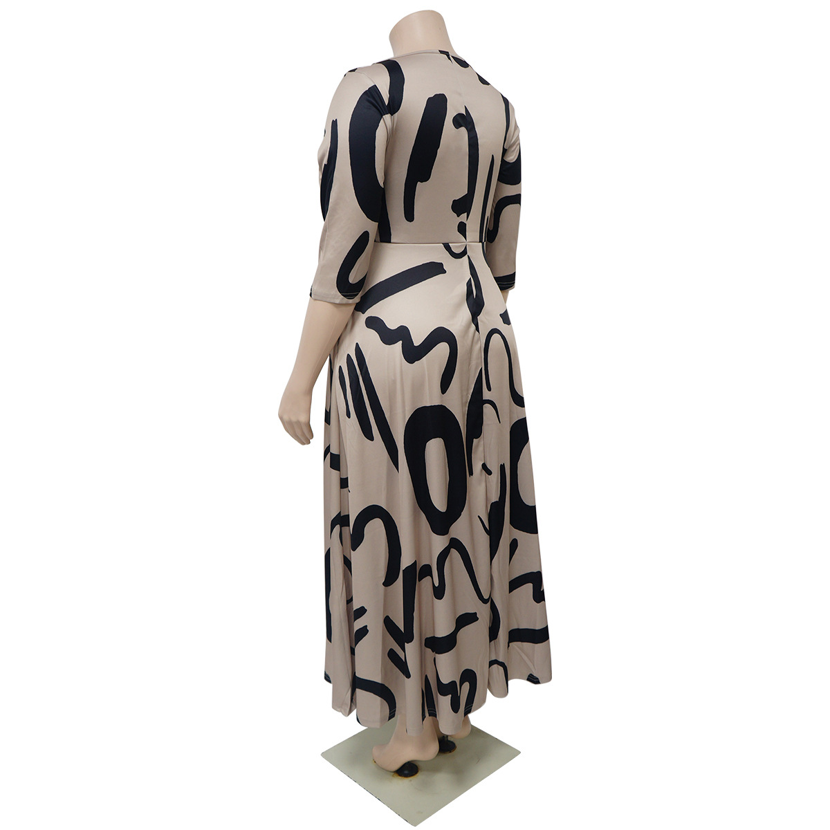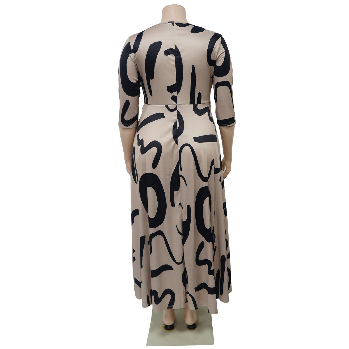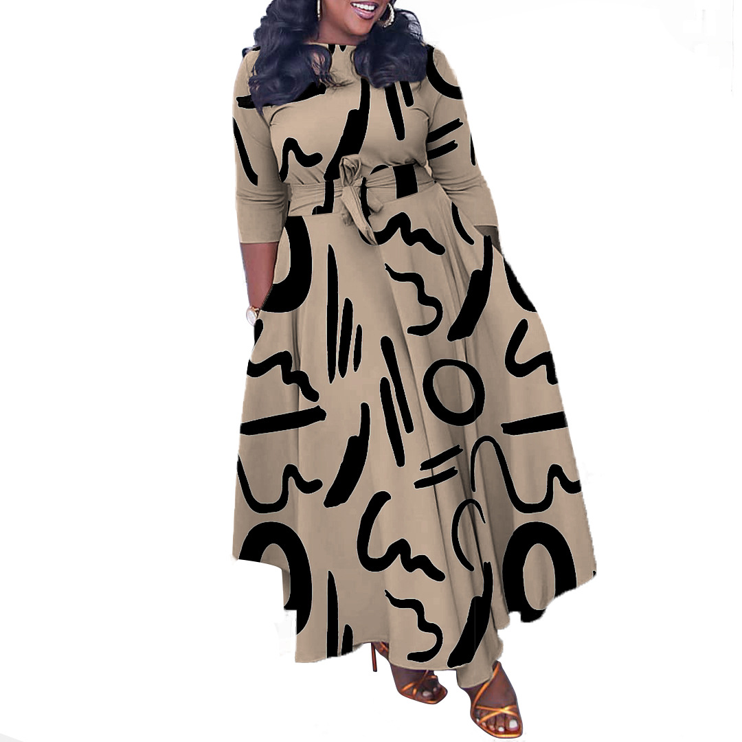 N7964 cross-border women's clothing 2023 autumn and winter New Fashion temperament lace-up African Plus Size long dress foreign trade dress