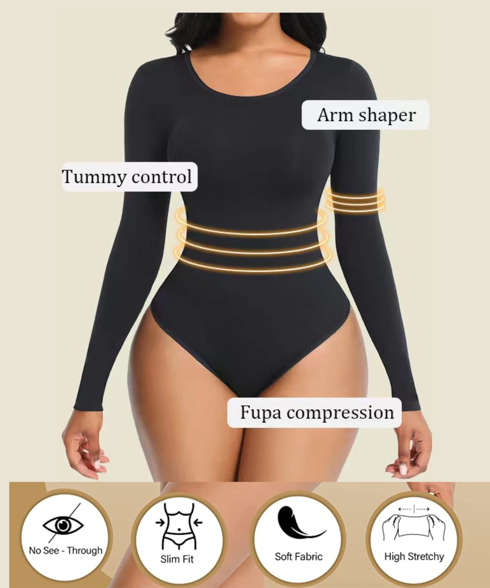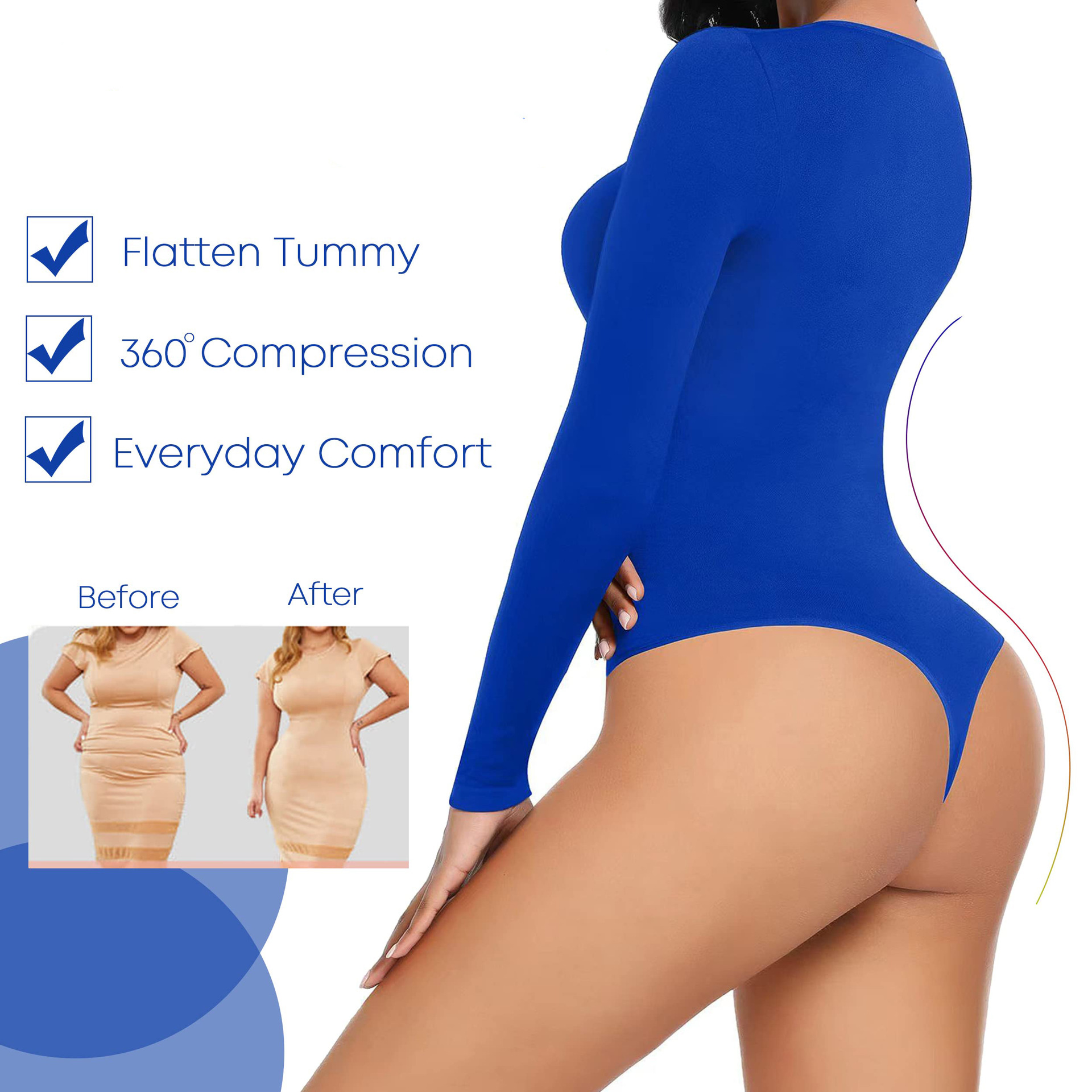 Cross-border European and American one-body slim-fit fashion round neck solid color stretch long sleeve triangle breasted open crotch body-shaping one-body suit