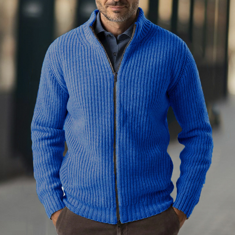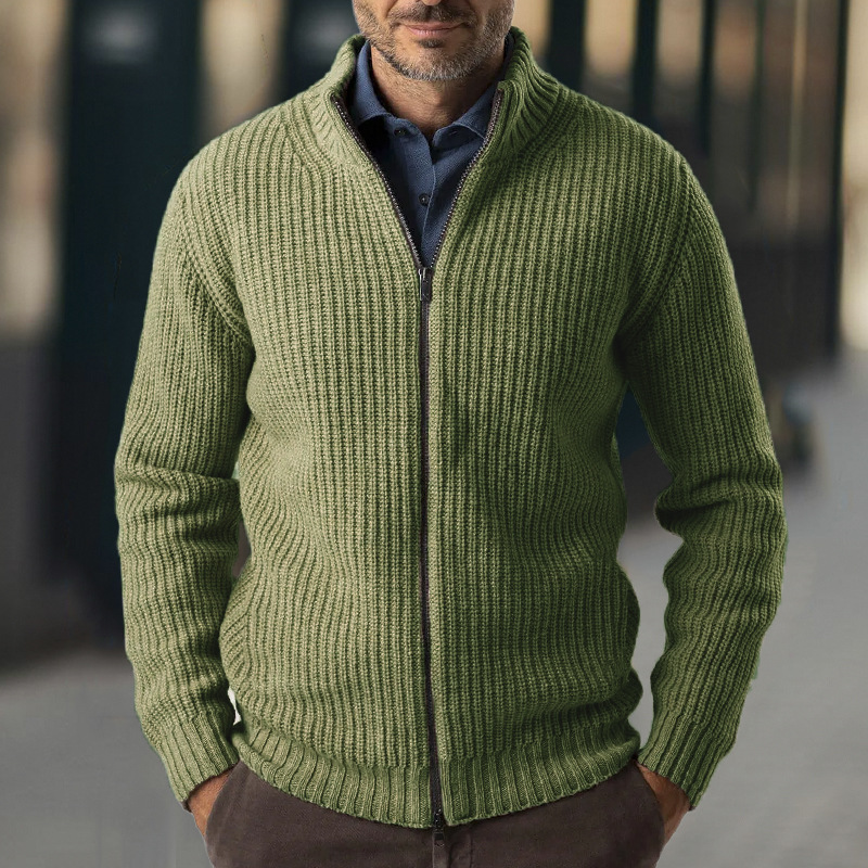 2024 autumn and winter New knitted cardigan half turtleneck long sleeve zipper sweater coat cross-border European and American slim sweater men