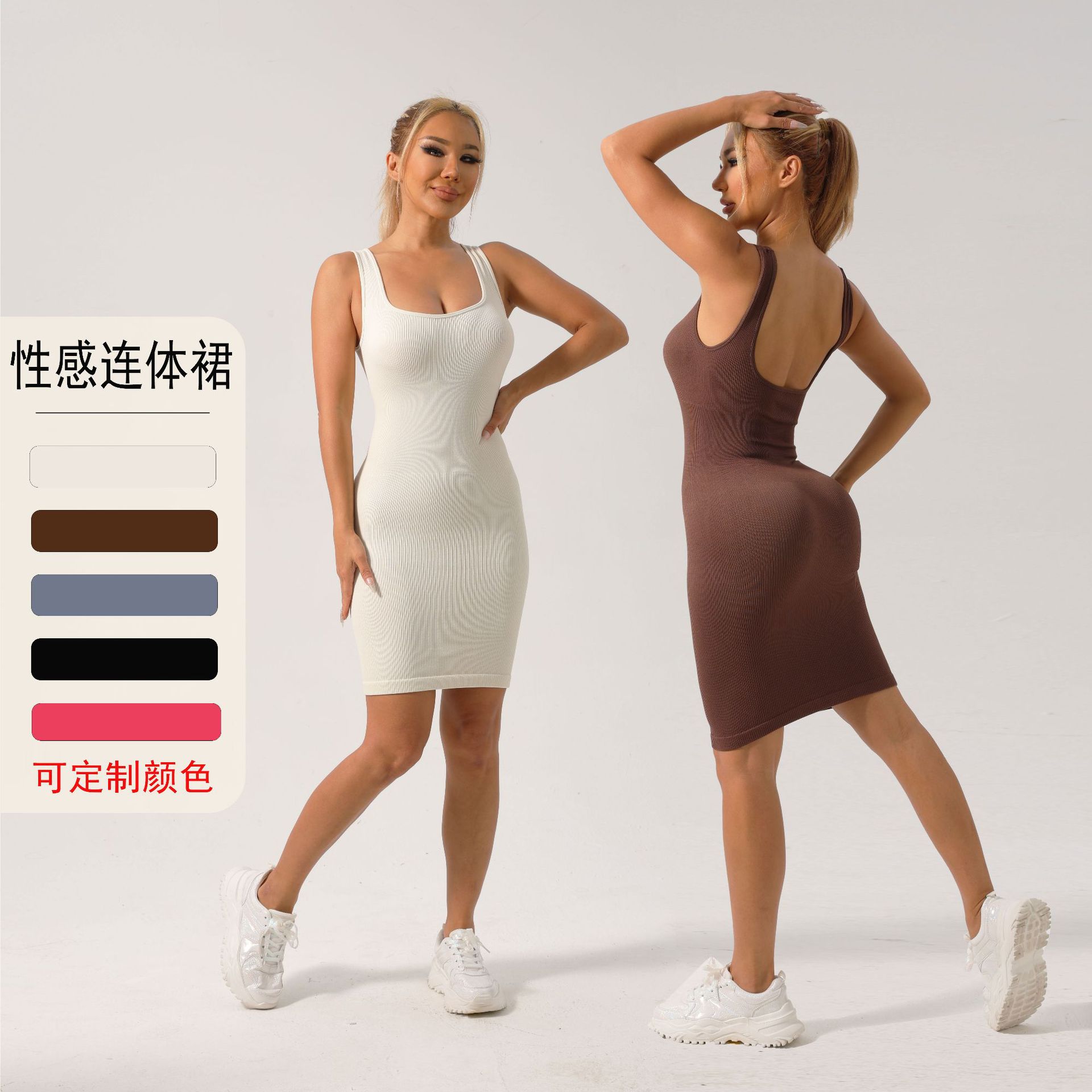 New European and American Sports Outdoor Leisure Slim-Fit Thread Sling Sleeveless Yoga One-Step Skirt S-Curve dress