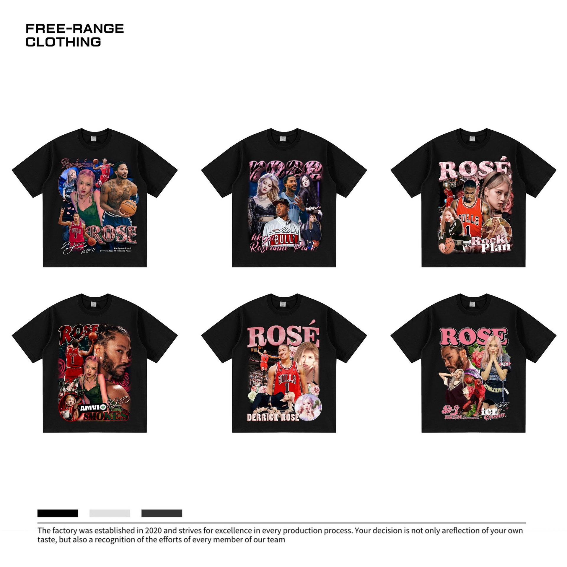 Rose Park Caiying American-style Digital Direct Injection Retro Hip-hop High Street Loose Cotton Round Neck Short-sleeved T-shirt Trendy