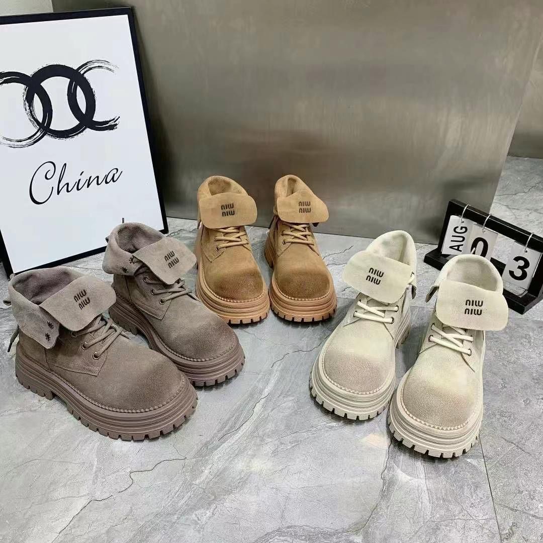 White Deer's Same Style Boots for Women in Autum New Outdoor Hiking and Mountaineering Rhubarb Boots First Layer Pigskin Work Boots for Women