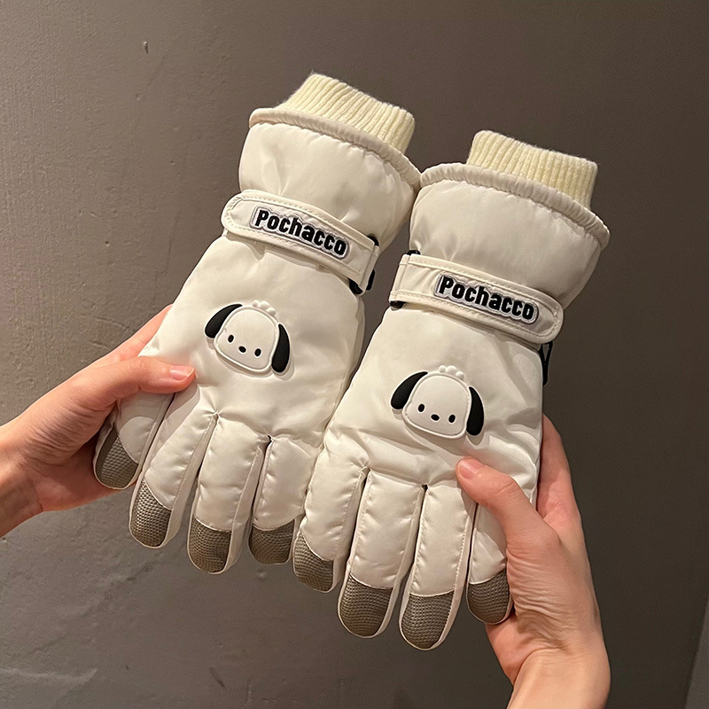 New ski gloves ladies autumn and winter plus thick velvet cotton tram windproof warm genuine cartoon cute touch screen